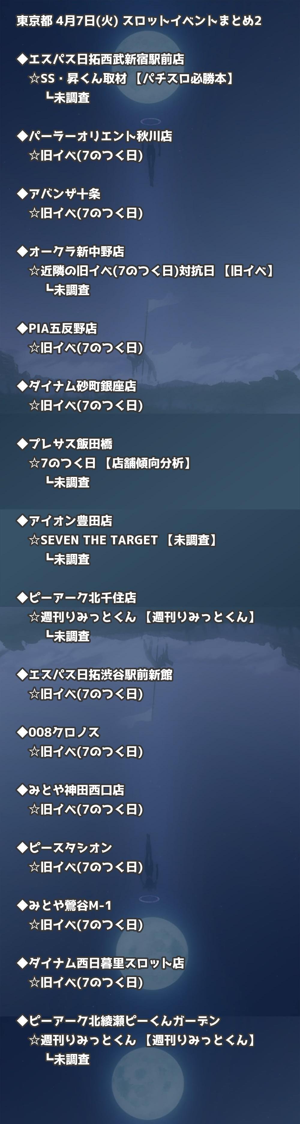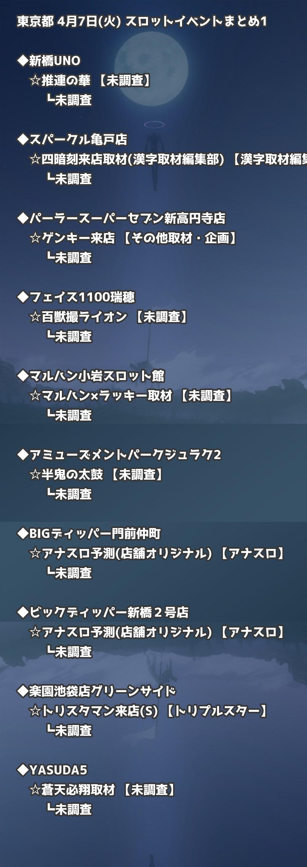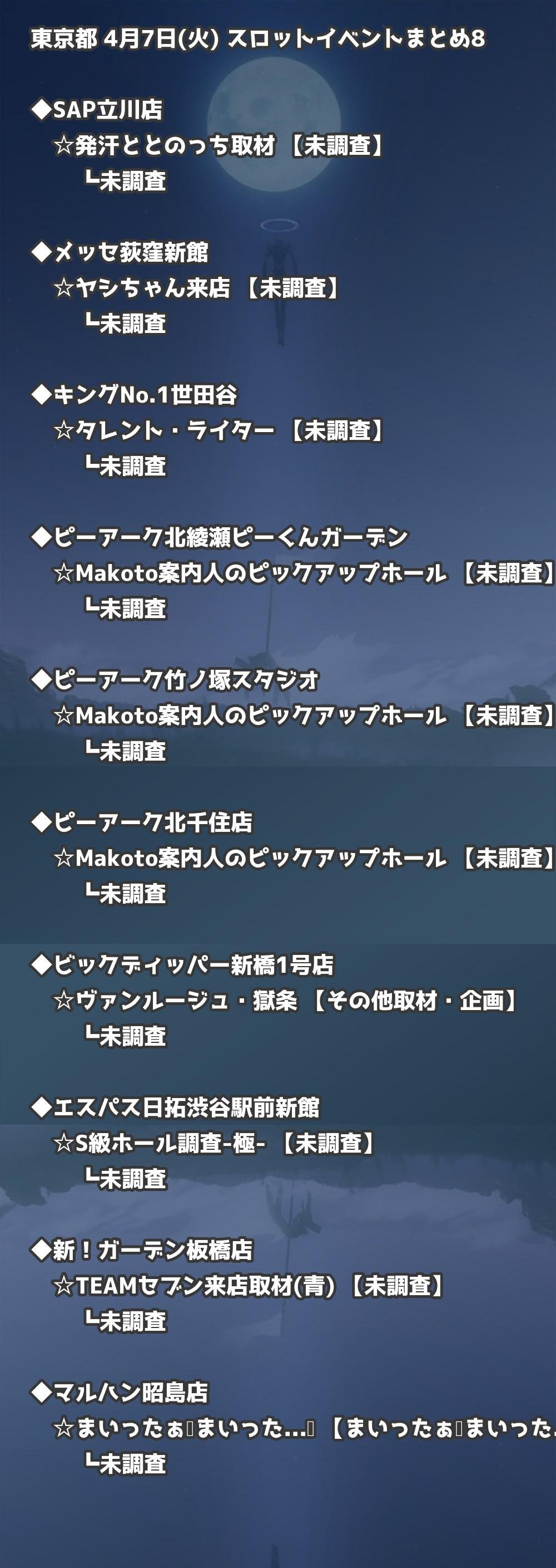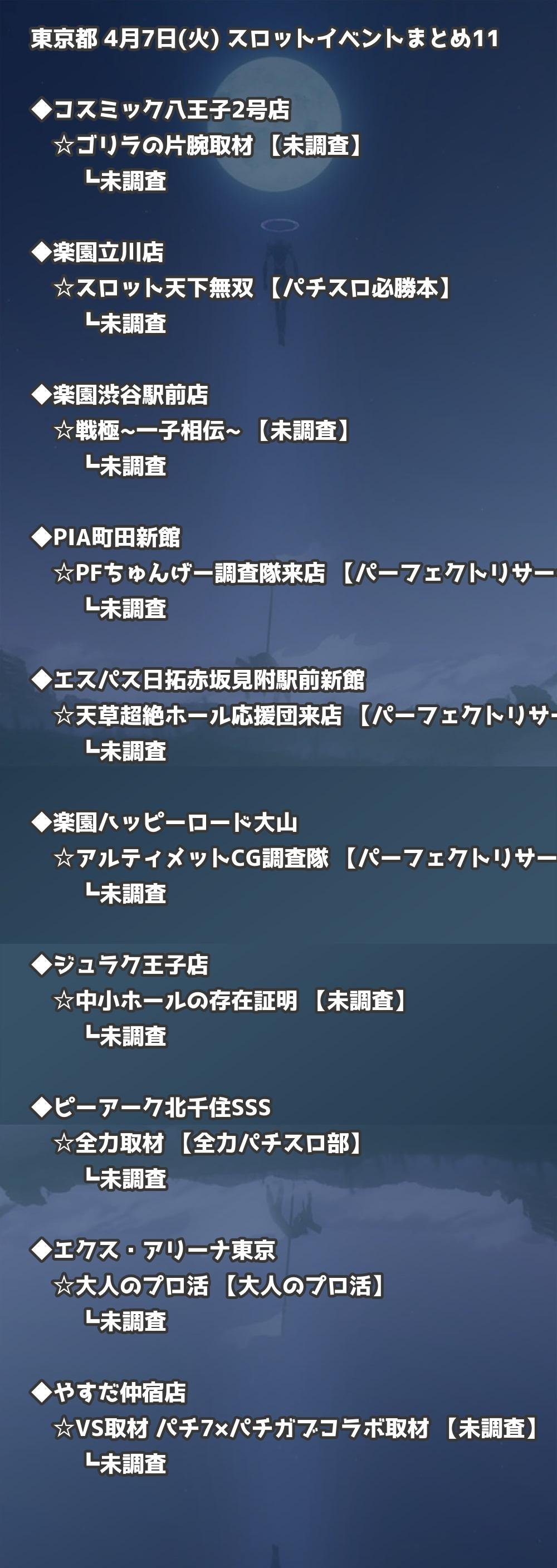 【東京都】4月7日(火) パチンコホールイベント取材まとめ記事です。