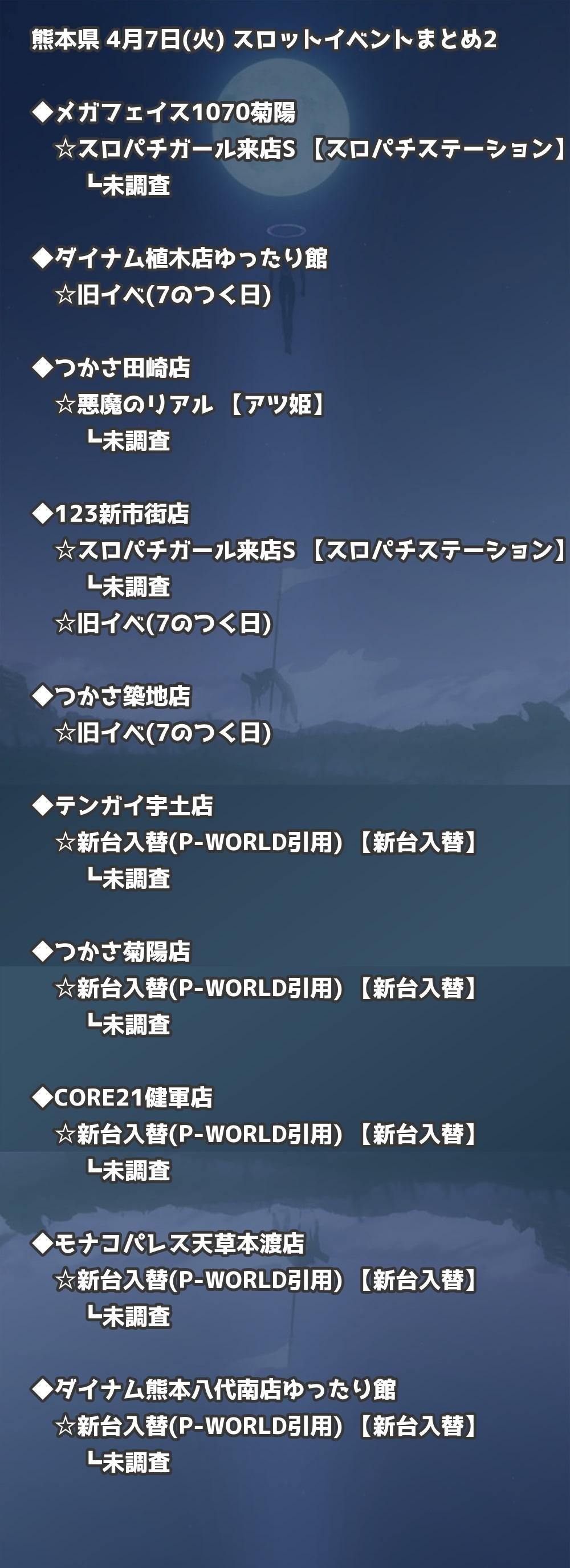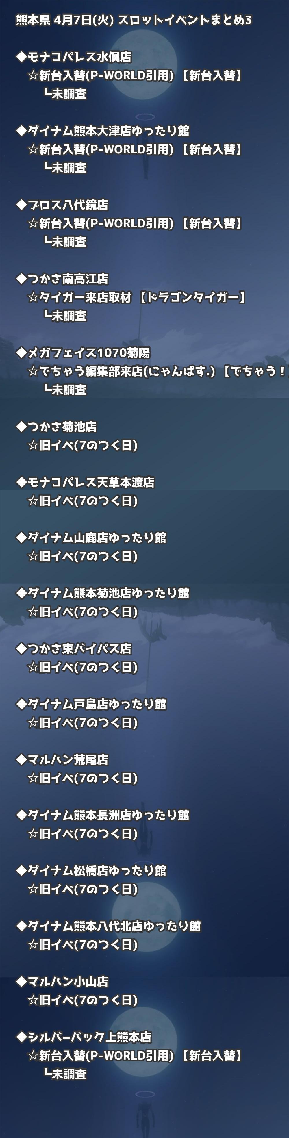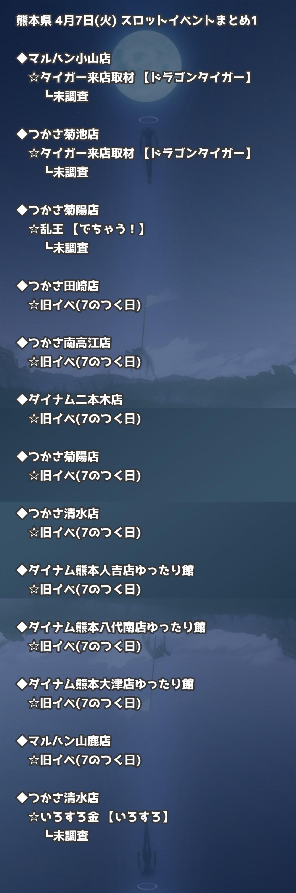 【熊本県】4月7日(火) パチンコホールイベント取材まとめ記事です。
