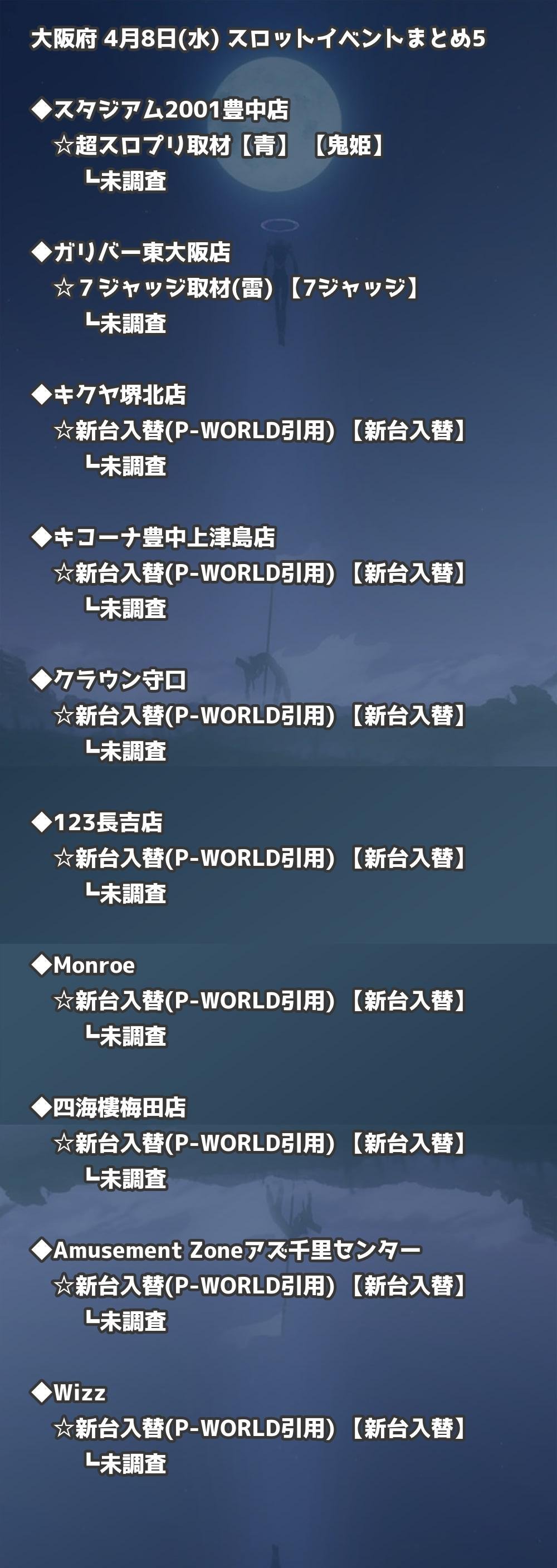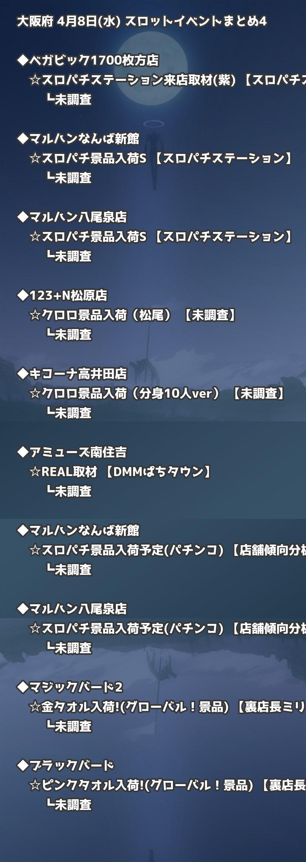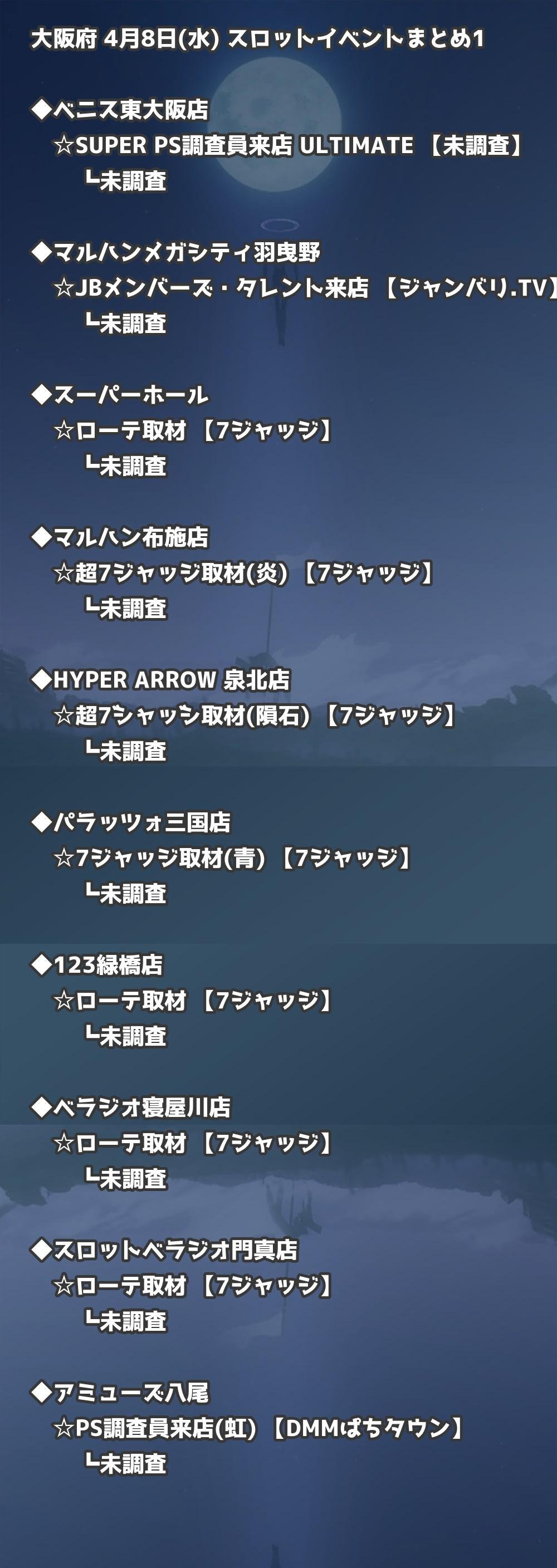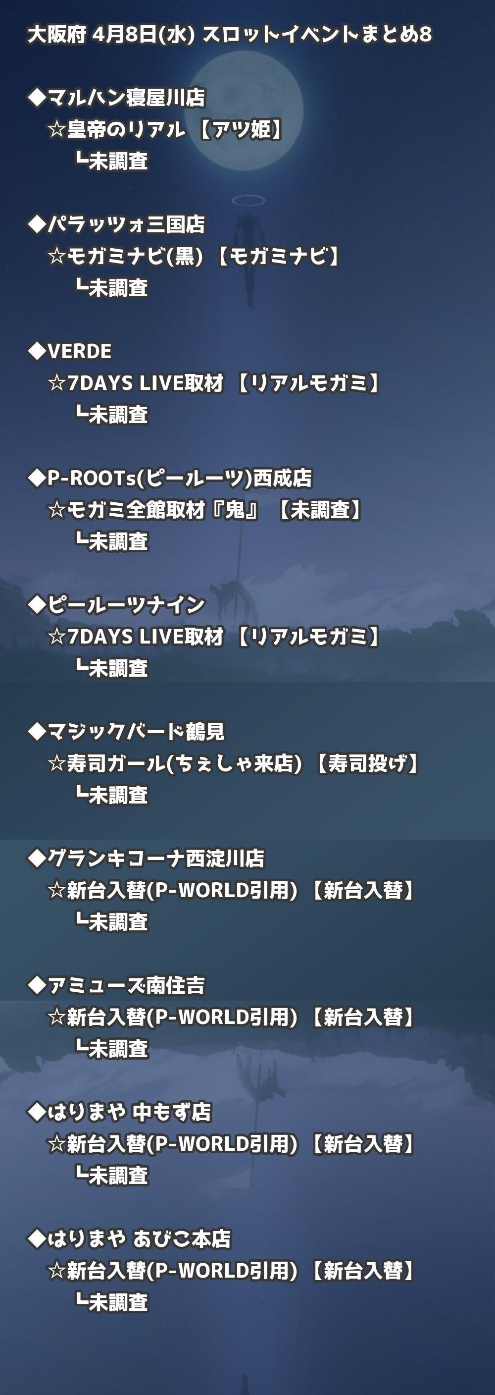 【大阪府】4月8日(水) パチンコホールイベント取材まとめ記事です。
