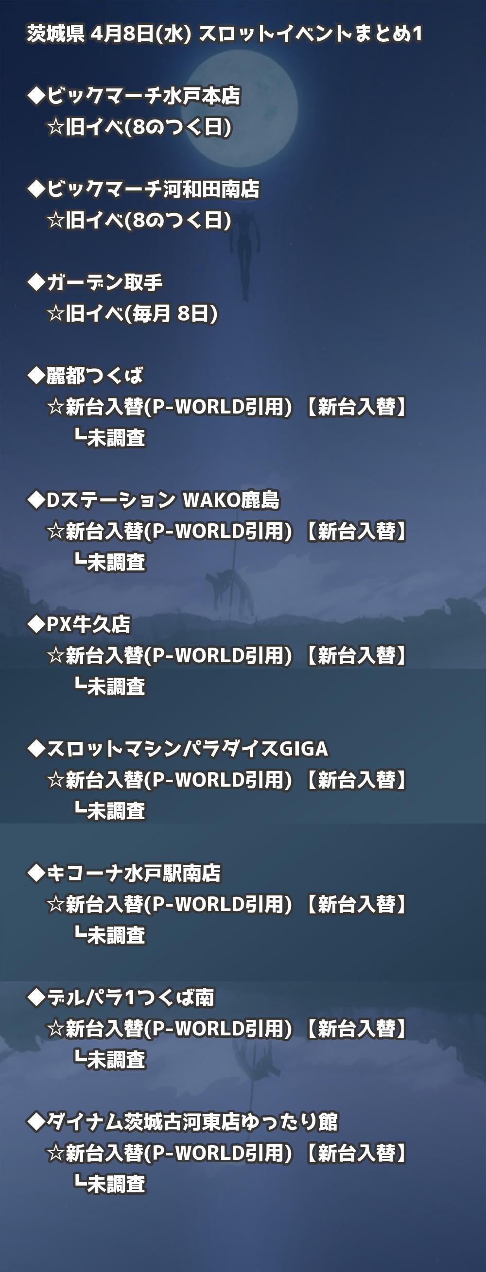 【茨城県】4月8日(水) パチンコホールイベント取材まとめ記事です。