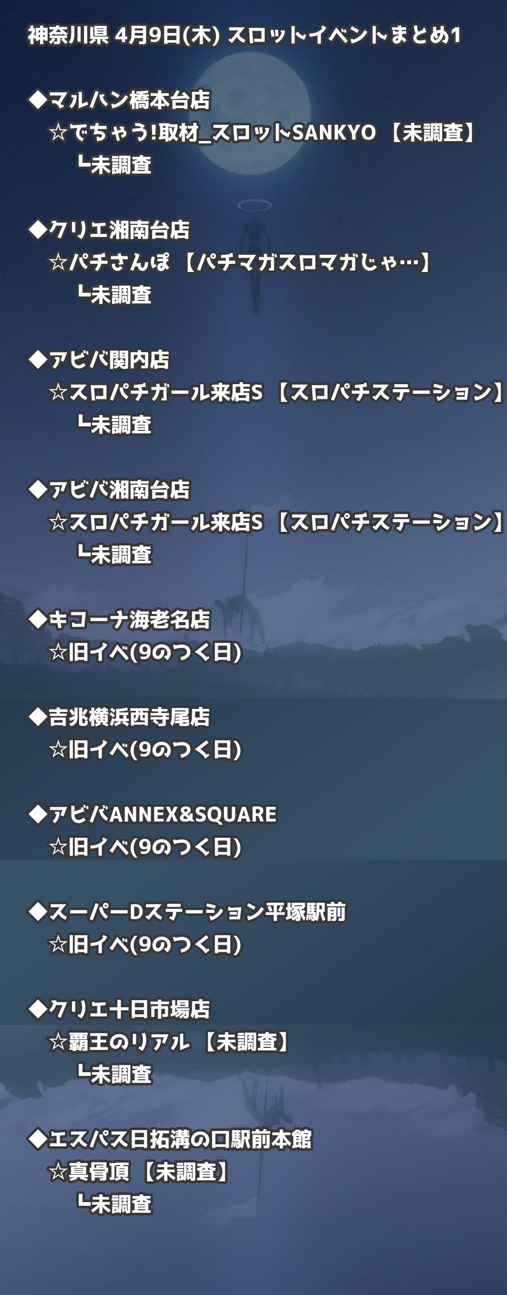【神奈川県】4月9日(木) パチンコホールイベント取材まとめ記事です。