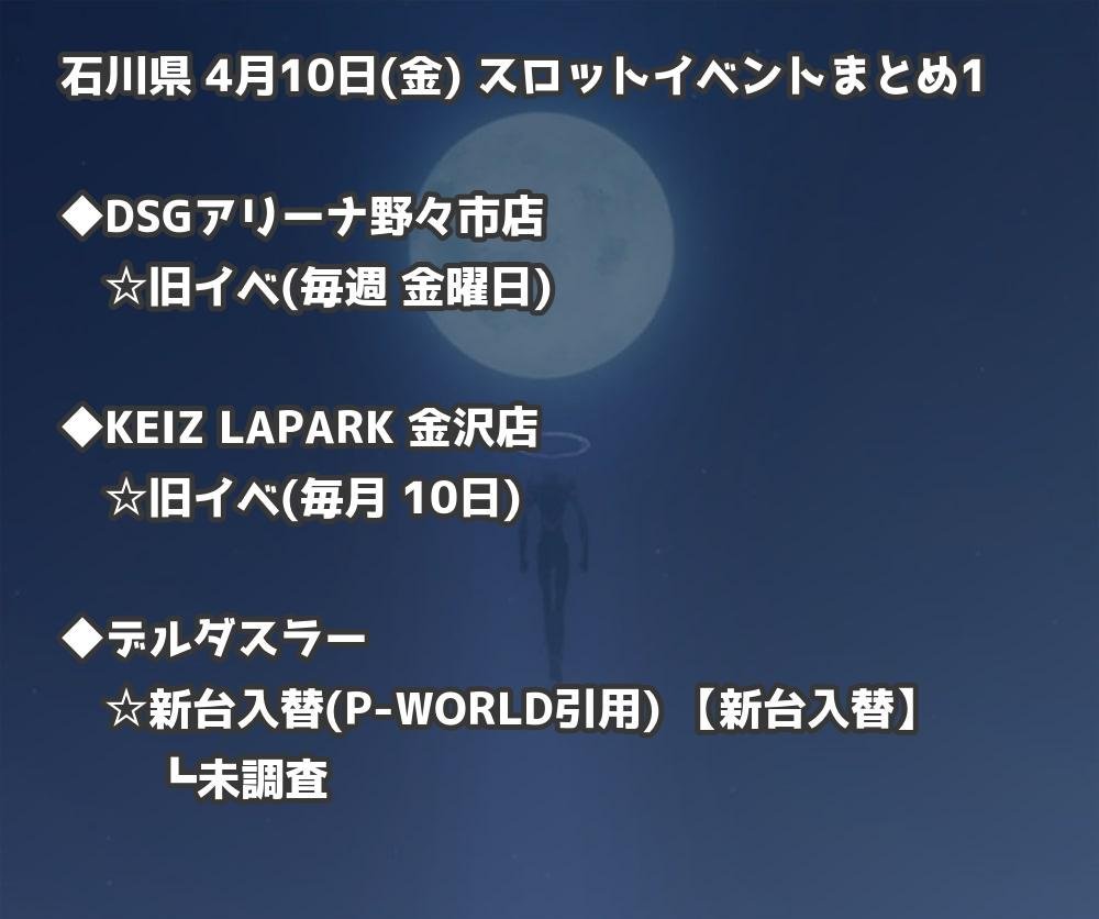 【石川県】4月10日(金) パチンコホールイベント取材まとめ記事です。