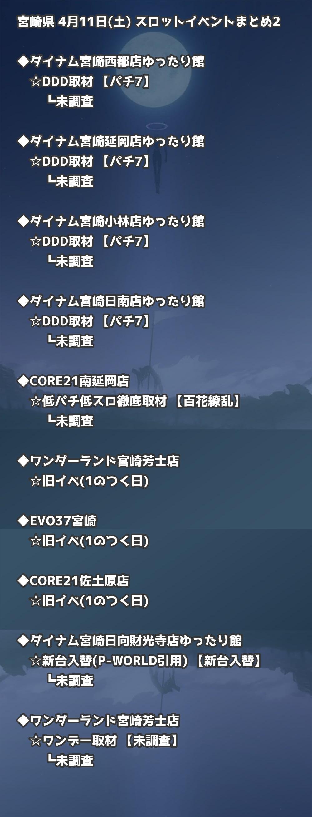 【宮崎県】4月11日(土) パチンコホールイベント取材まとめ記事です。