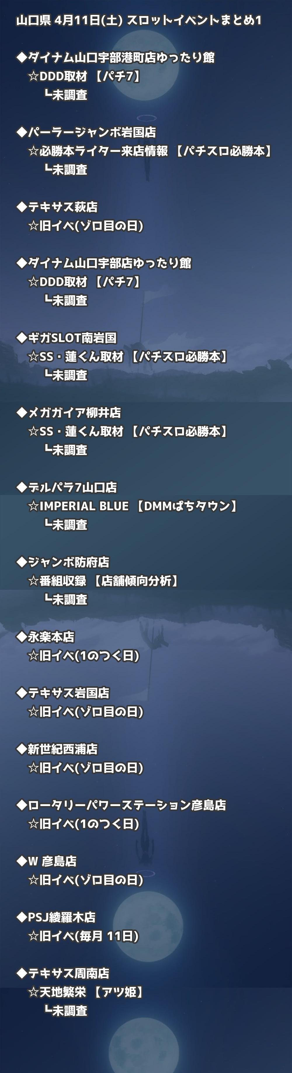 📊 山口県 4月11日(土) 勝てるパチンコ・スロット取材店舗一覧|おすすめ順