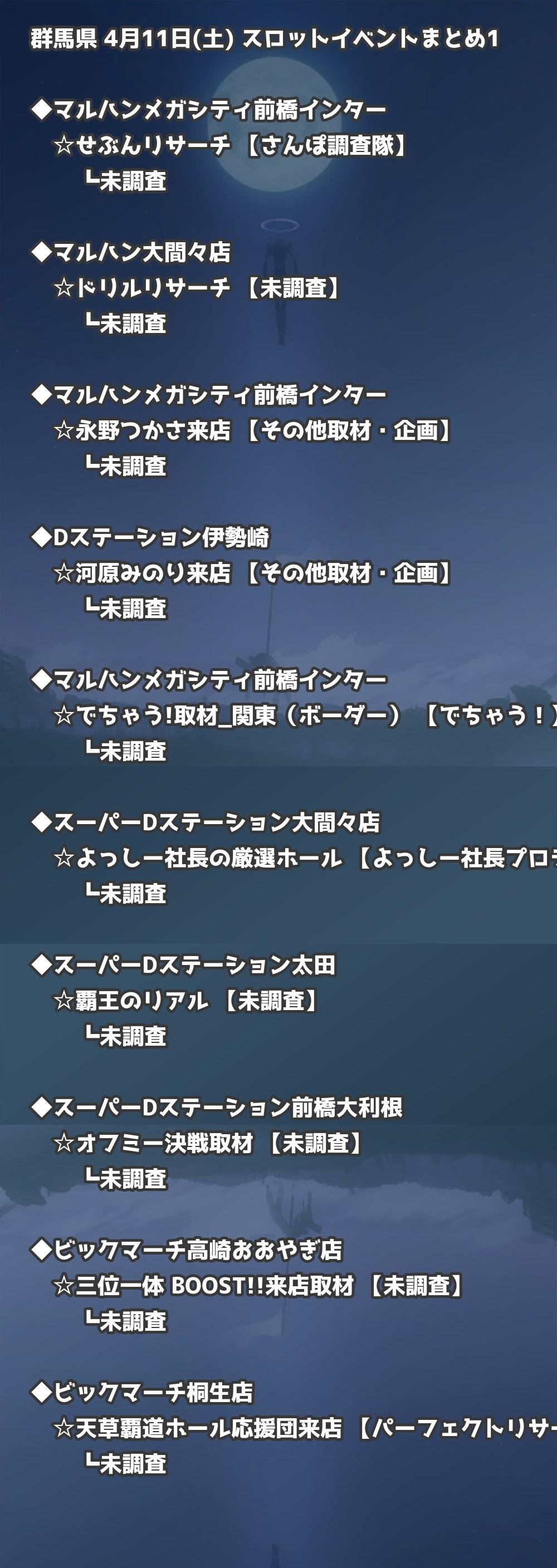 【群馬県】4月11日(土) パチンコホールイベント取材まとめ記事です。