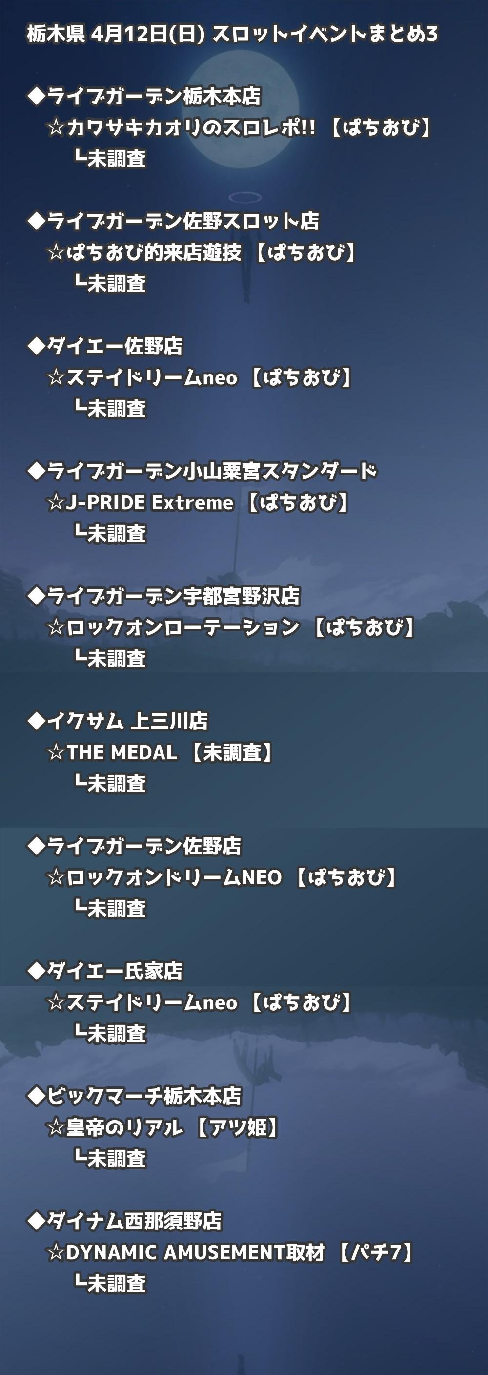 4月12日(日) 栃木県のTOP20の結果を掲載しています。タップで上位機種など詳細が見れます。