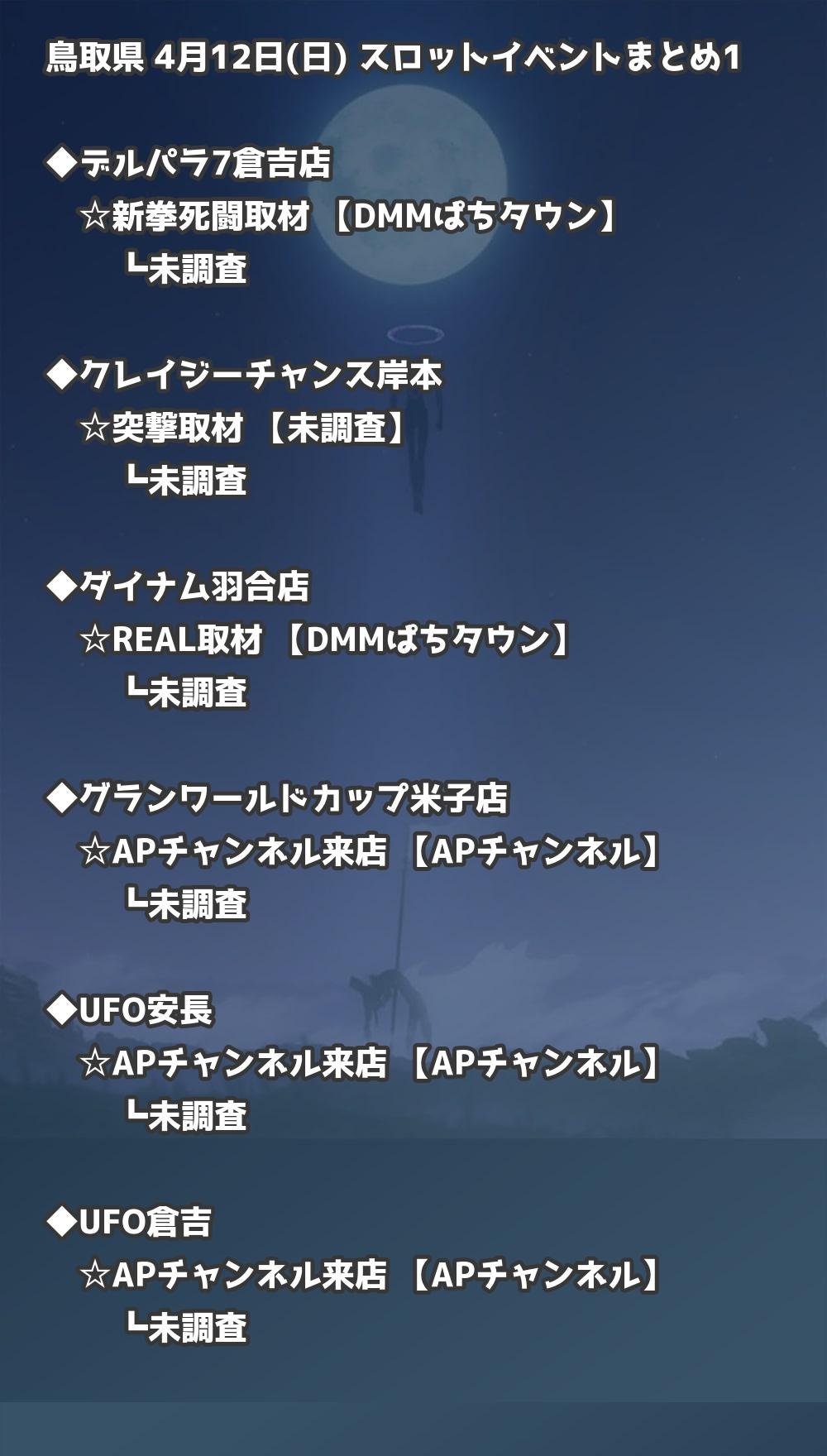 【鳥取県】4月12日(日) パチンコホールイベント取材まとめ記事です。