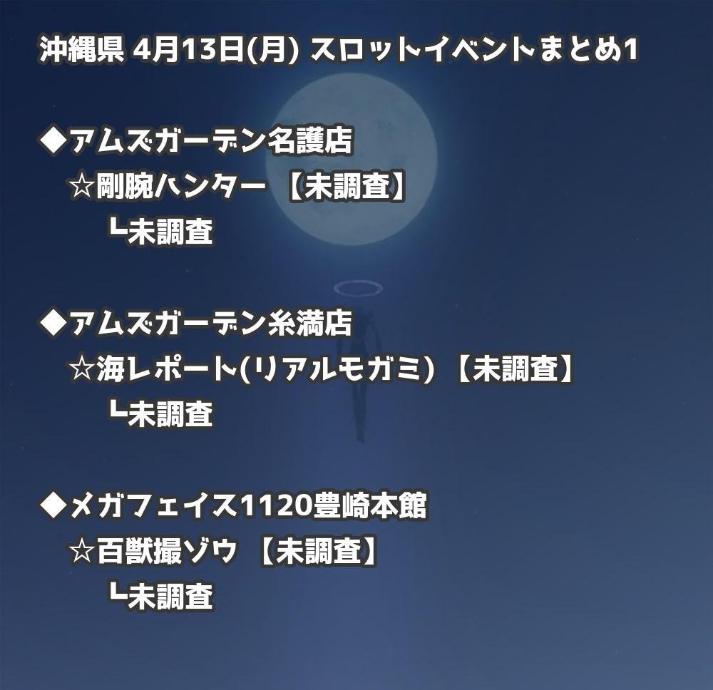 【沖縄県】4月13日(月) パチンコホールイベント取材まとめ記事です。