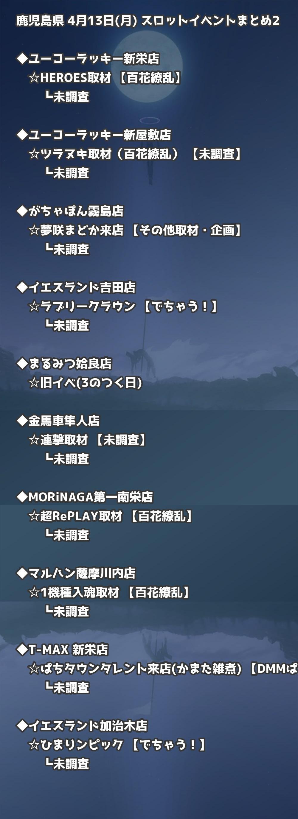 【鹿児島県】4月13日(月) パチンコホールイベント取材まとめ記事です。