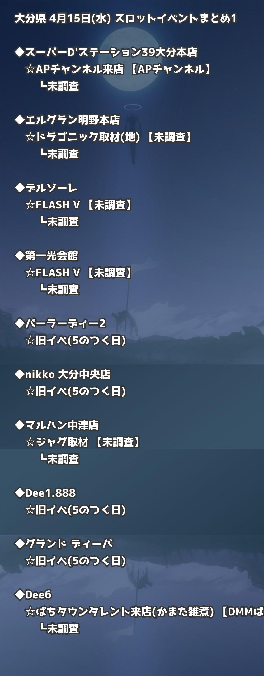 【大分県】4月15日(水) パチンコホールイベント取材まとめ記事です。