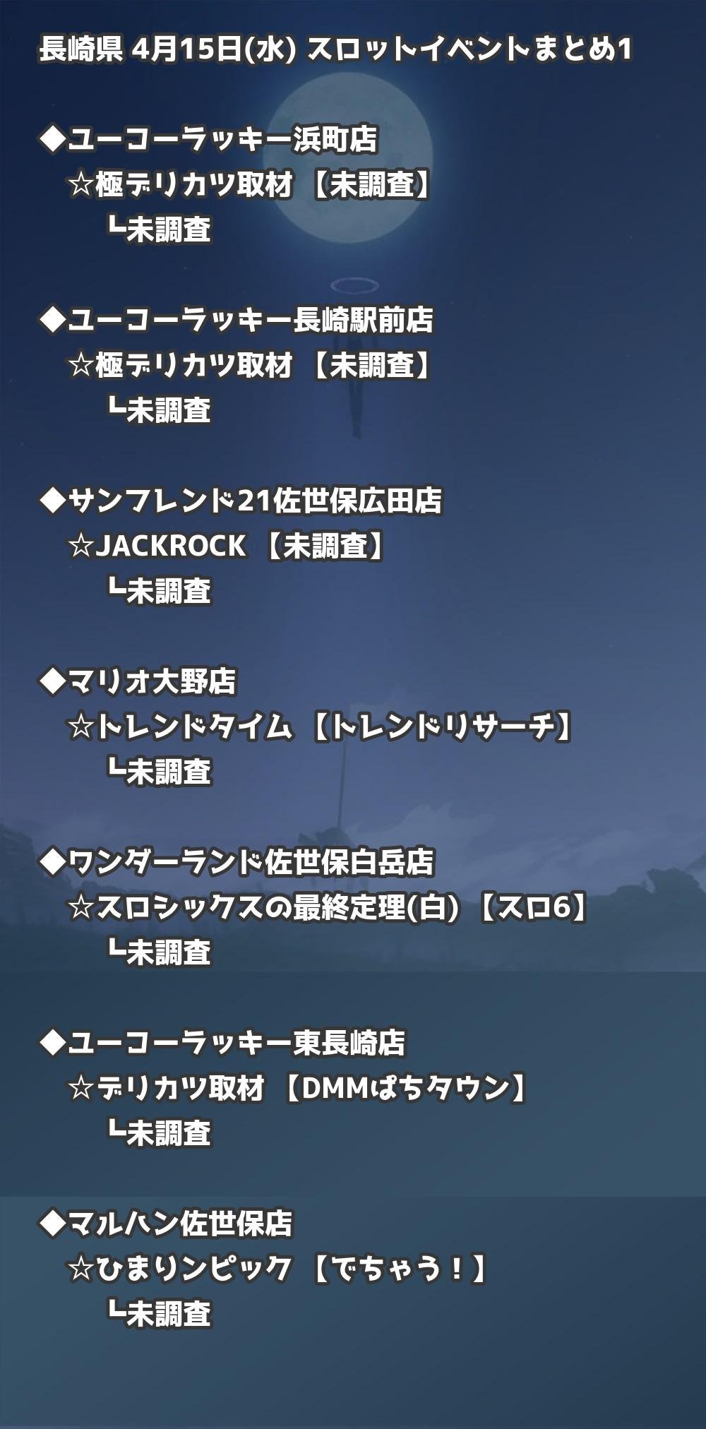 📊 長崎県 4月15日(水) 勝てるパチンコ・スロット取材店舗一覧|おすすめ順