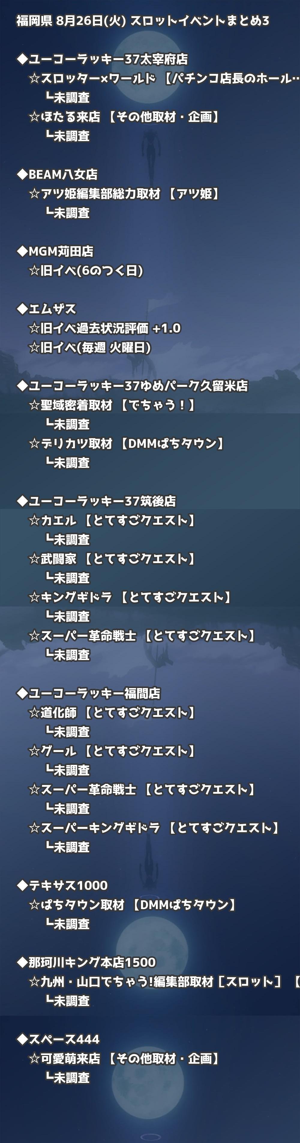 📊 福岡県 8月26日(火) 勝てるパチンコ・スロット取材店舗一覧|おすすめ順