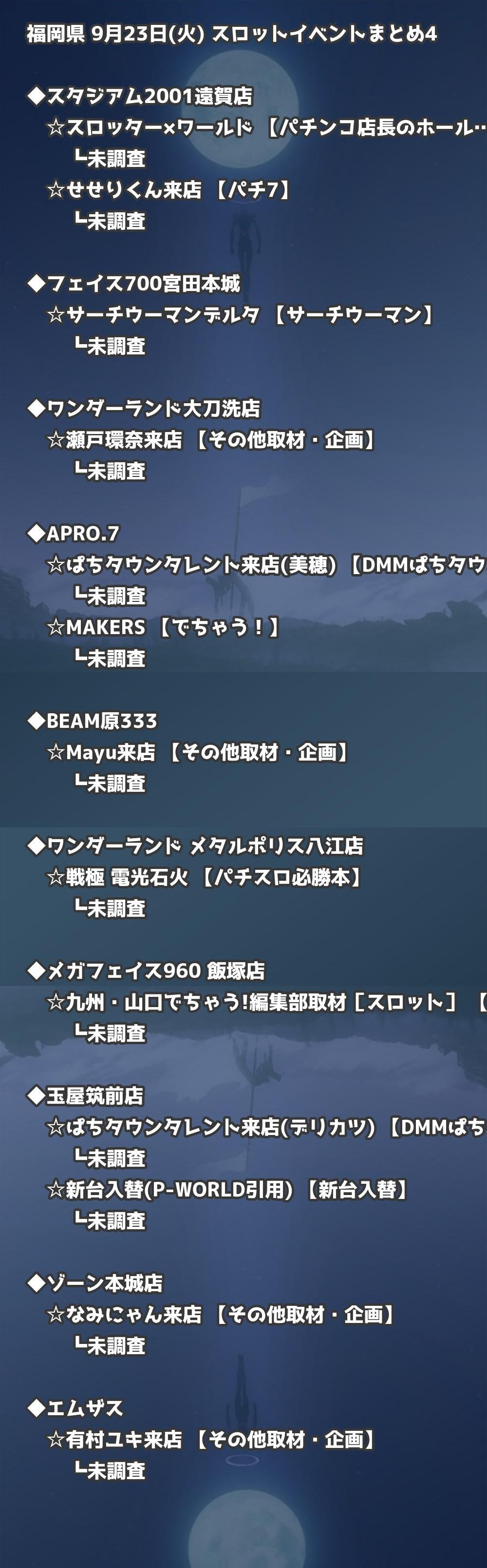 📊 福岡県 9月23日(火) 勝てるパチンコ・スロット取材店舗一覧|おすすめ順