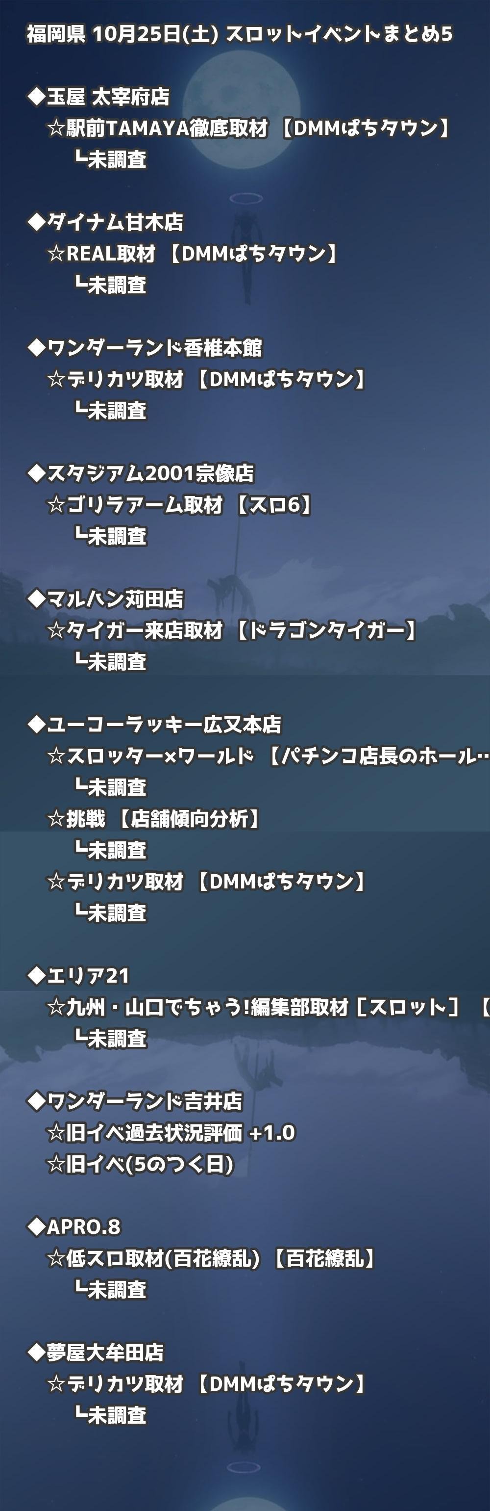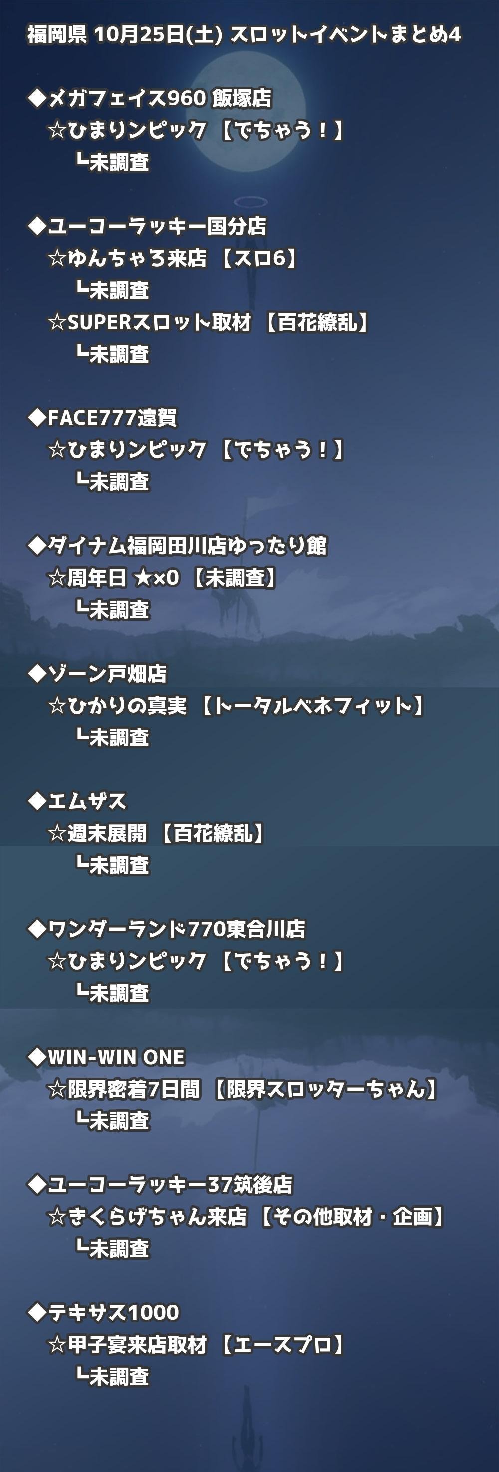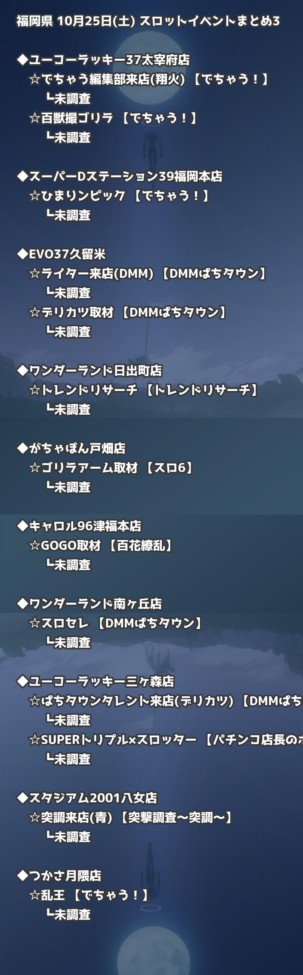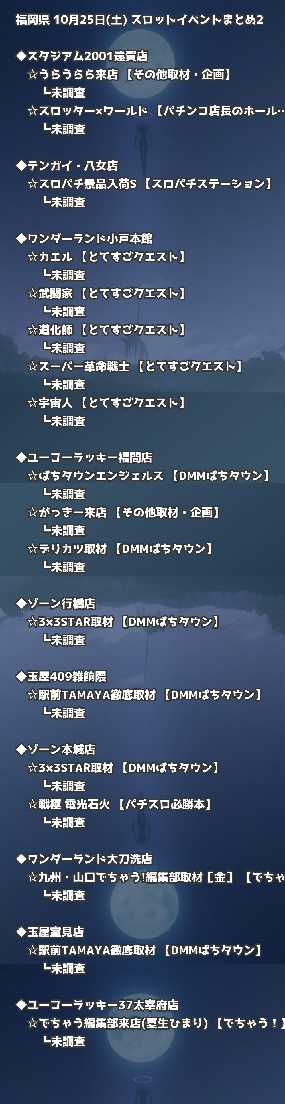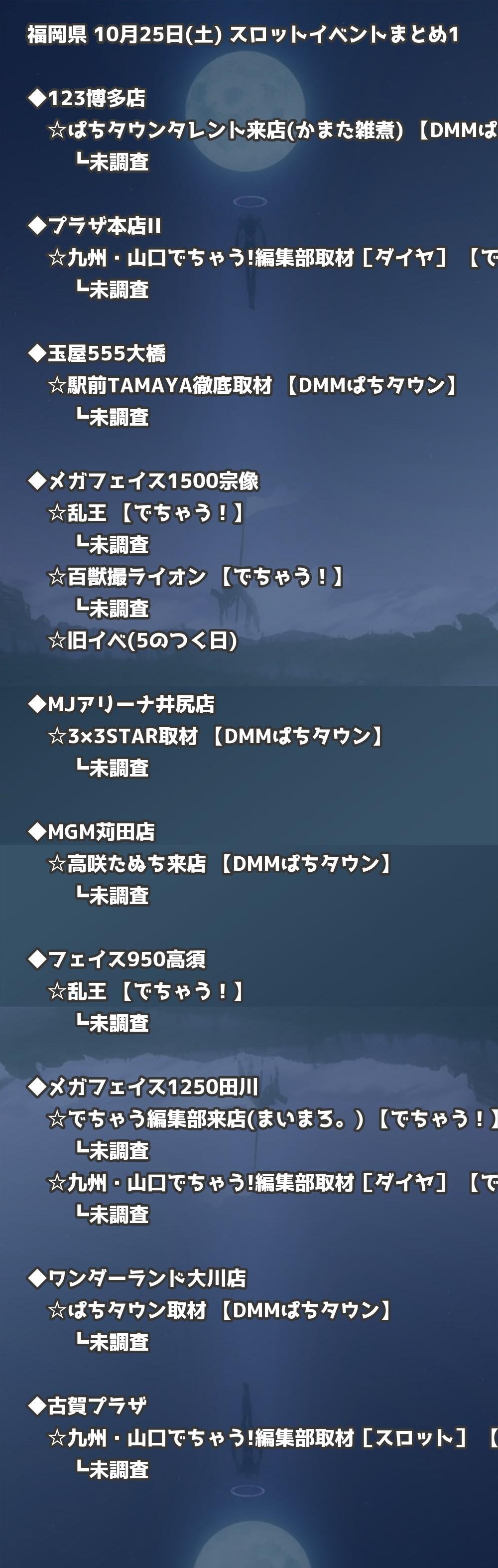 📊 福岡県 10月25日(土) 勝てるパチンコ・スロット取材店舗一覧|おすすめ順