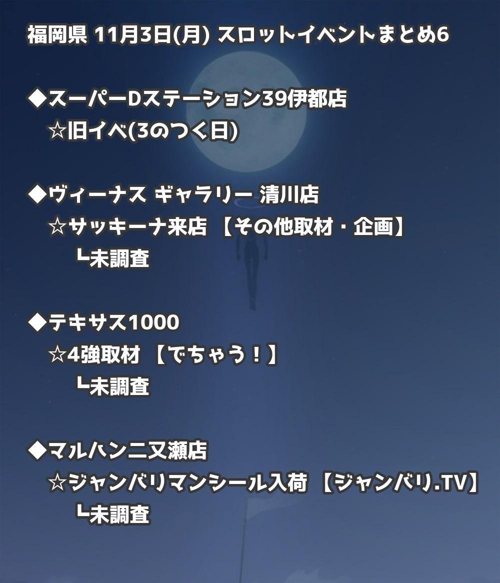 📊 福岡県 11月3日(月) 勝てるパチンコ・スロット取材店舗一覧|おすすめ順