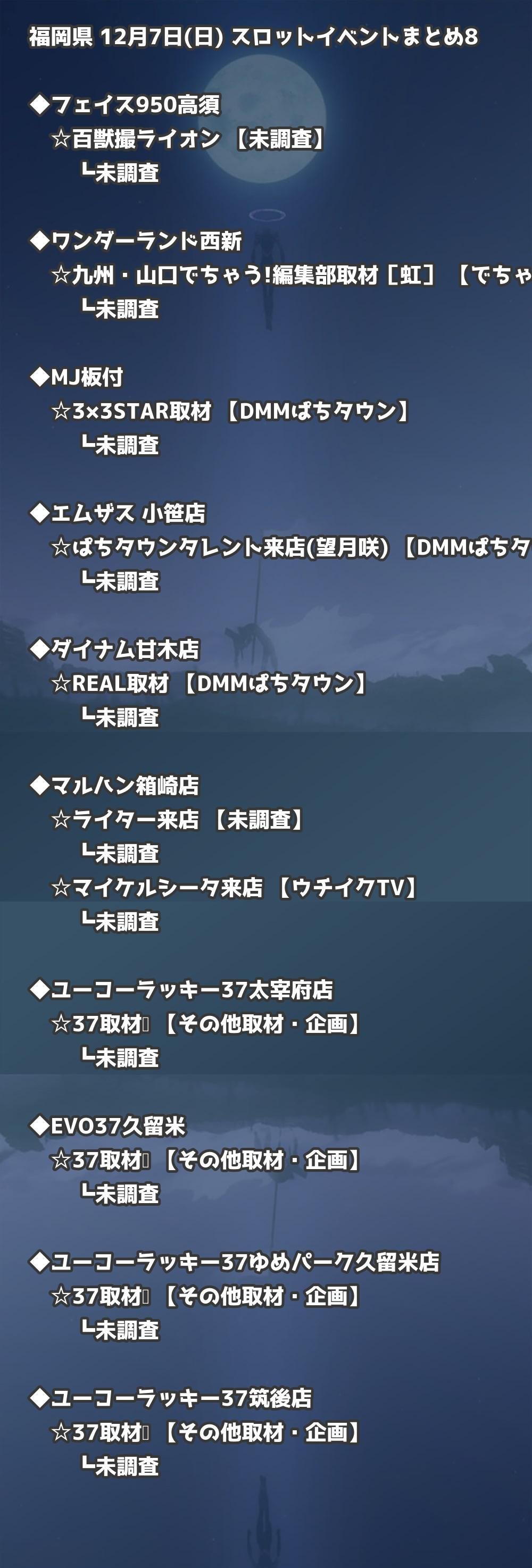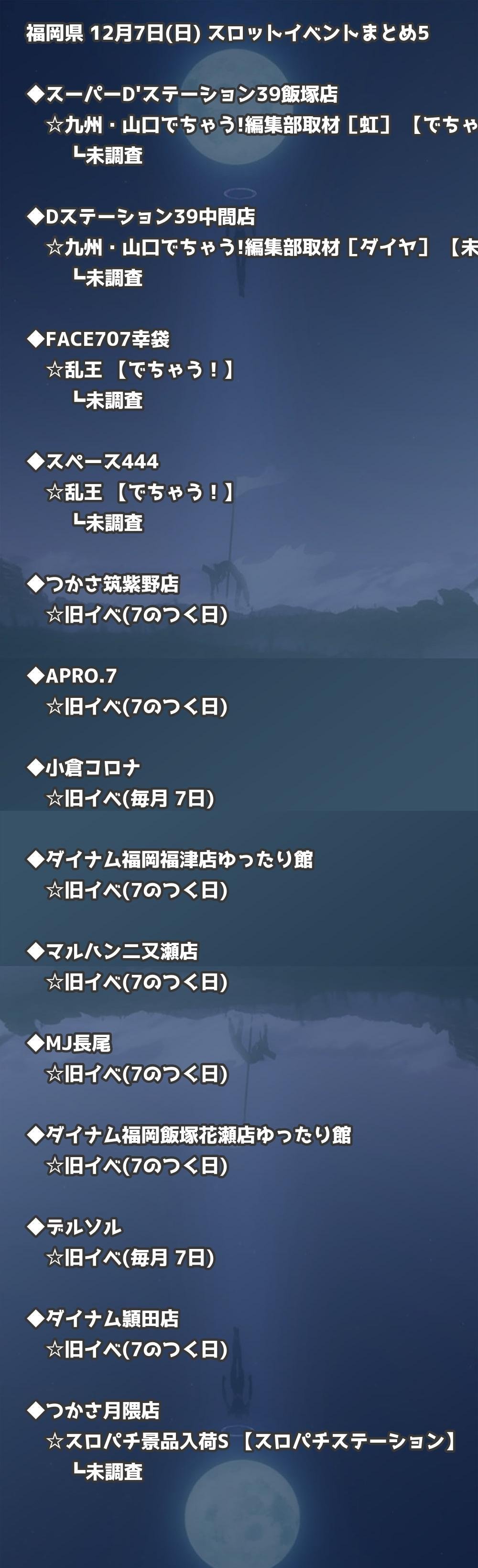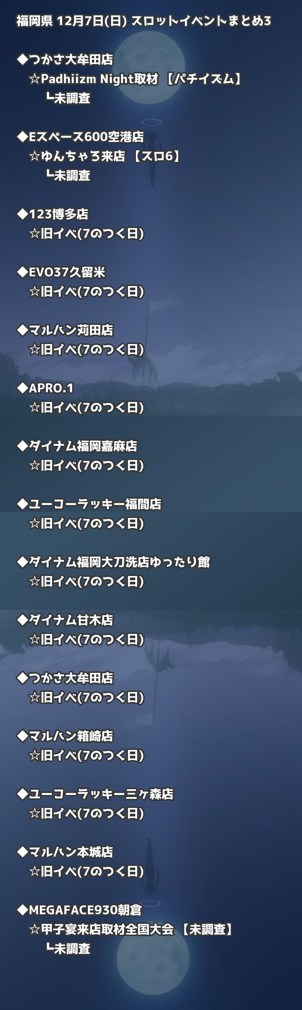 福岡県内のパチンコファンの皆様へ。12月7日(日)の博多・天神エリアを中心としたパチンコホールイベント取材まとめ記事です。