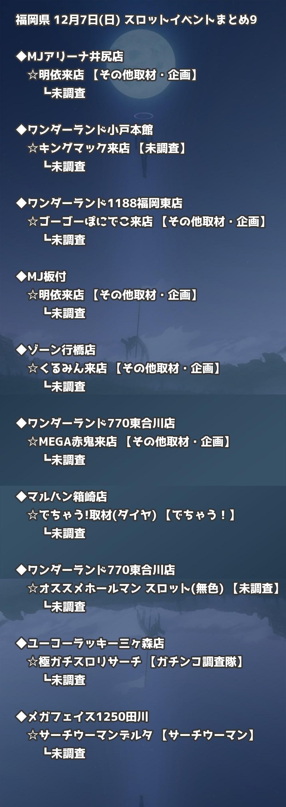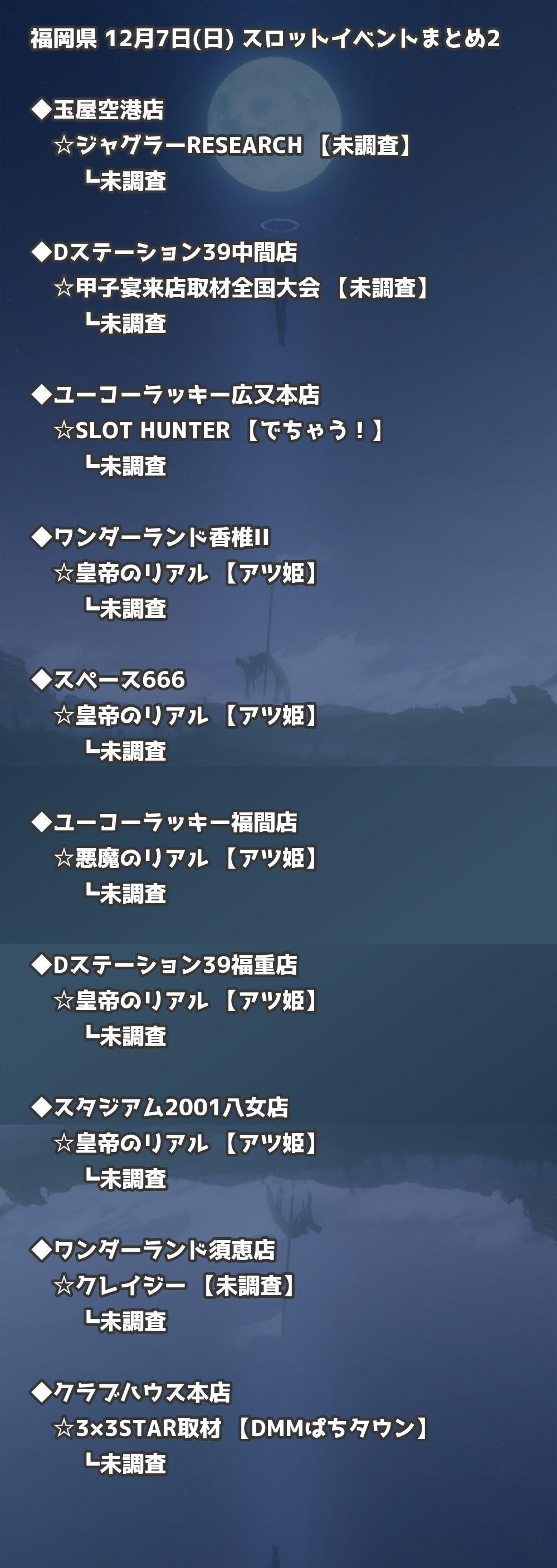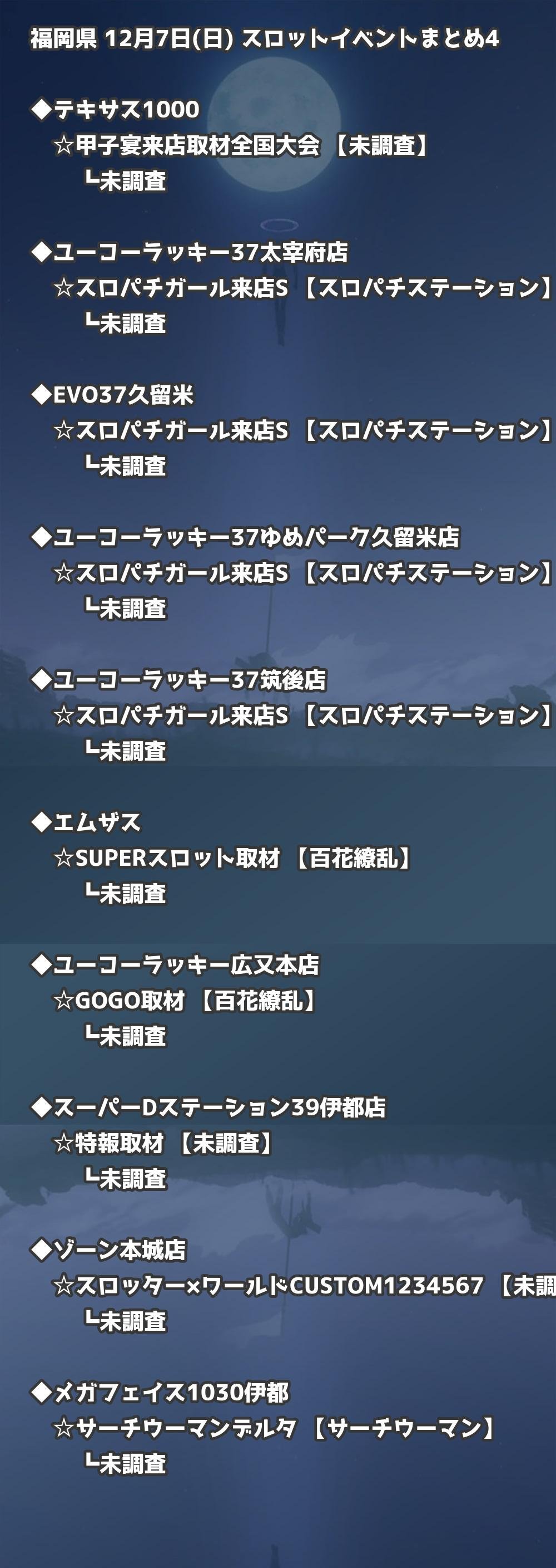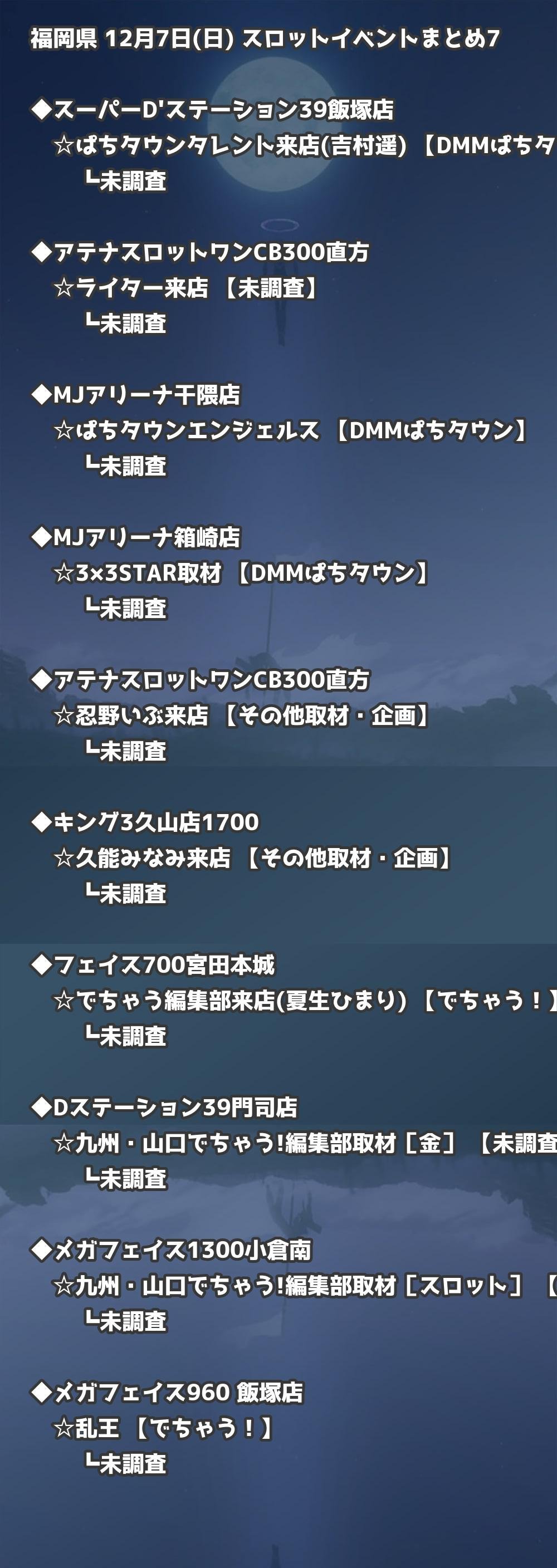 福岡県内のパチンコファンの皆様へ。12月7日(日)の博多・天神エリアを中心としたパチンコホールイベント取材まとめ記事です。