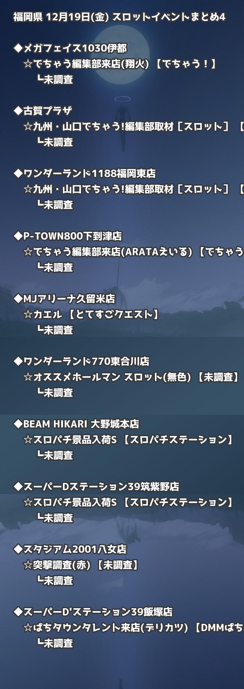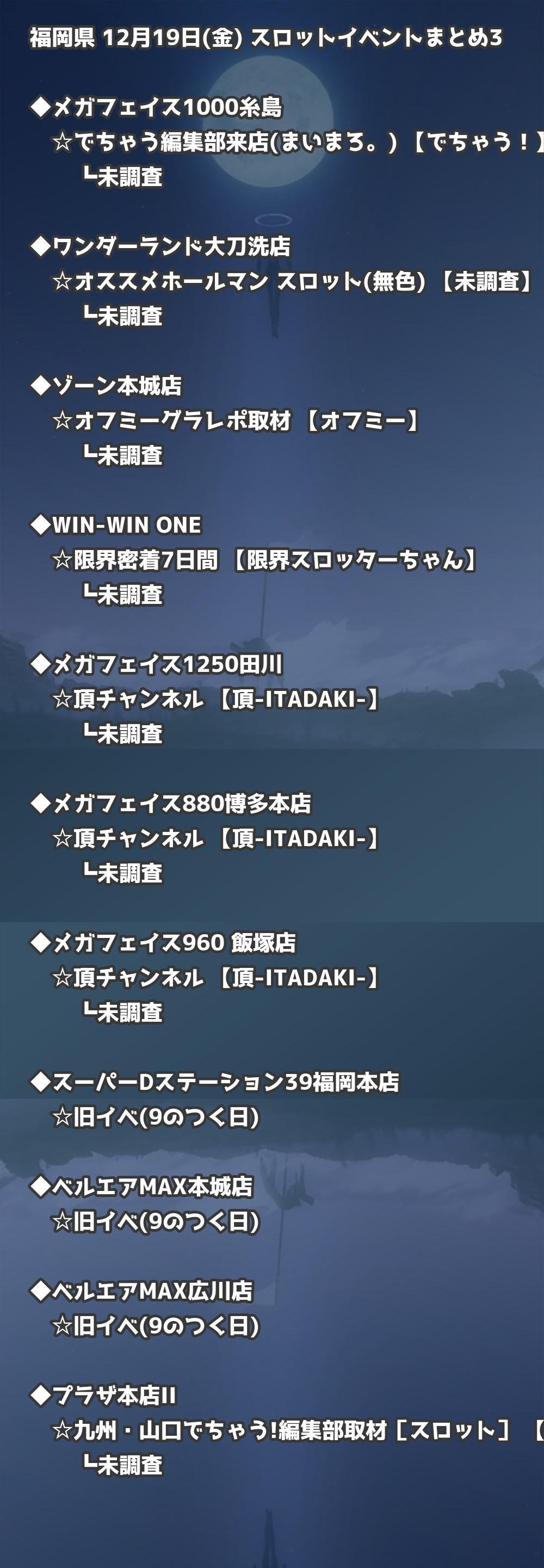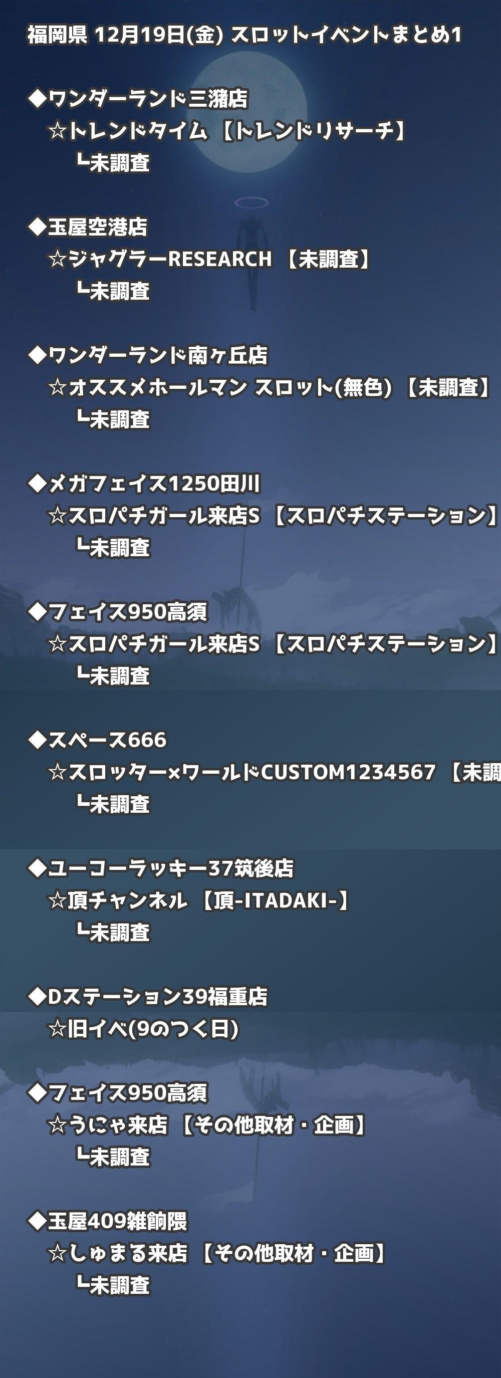 福岡県内のパチンコファンの皆様へ。12月19日(金)の博多・天神エリアを中心としたパチンコホールイベント取材まとめ記事です。