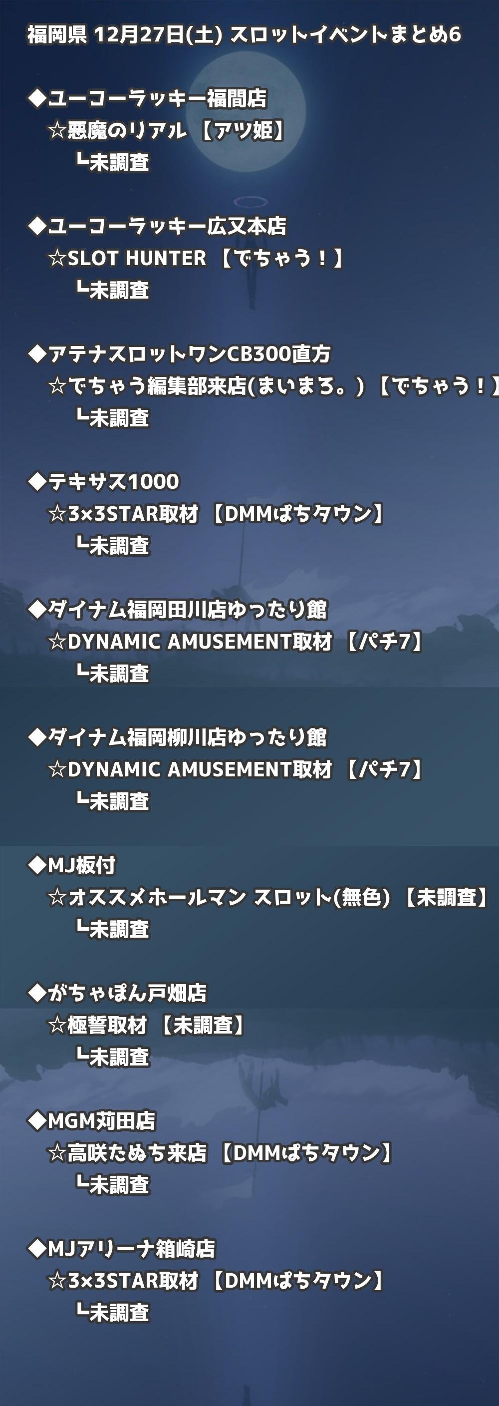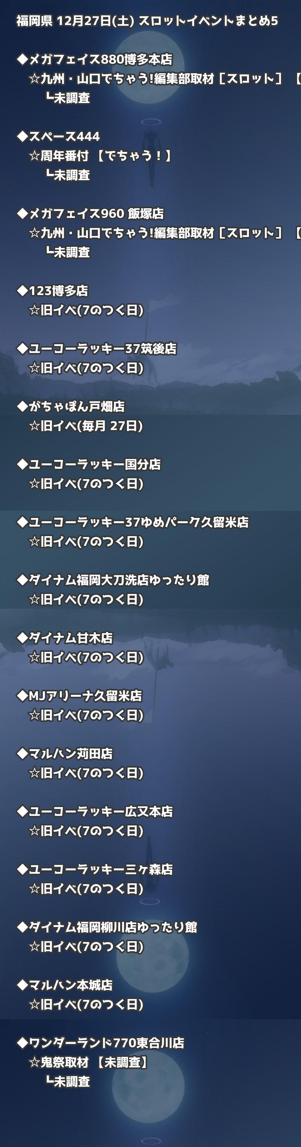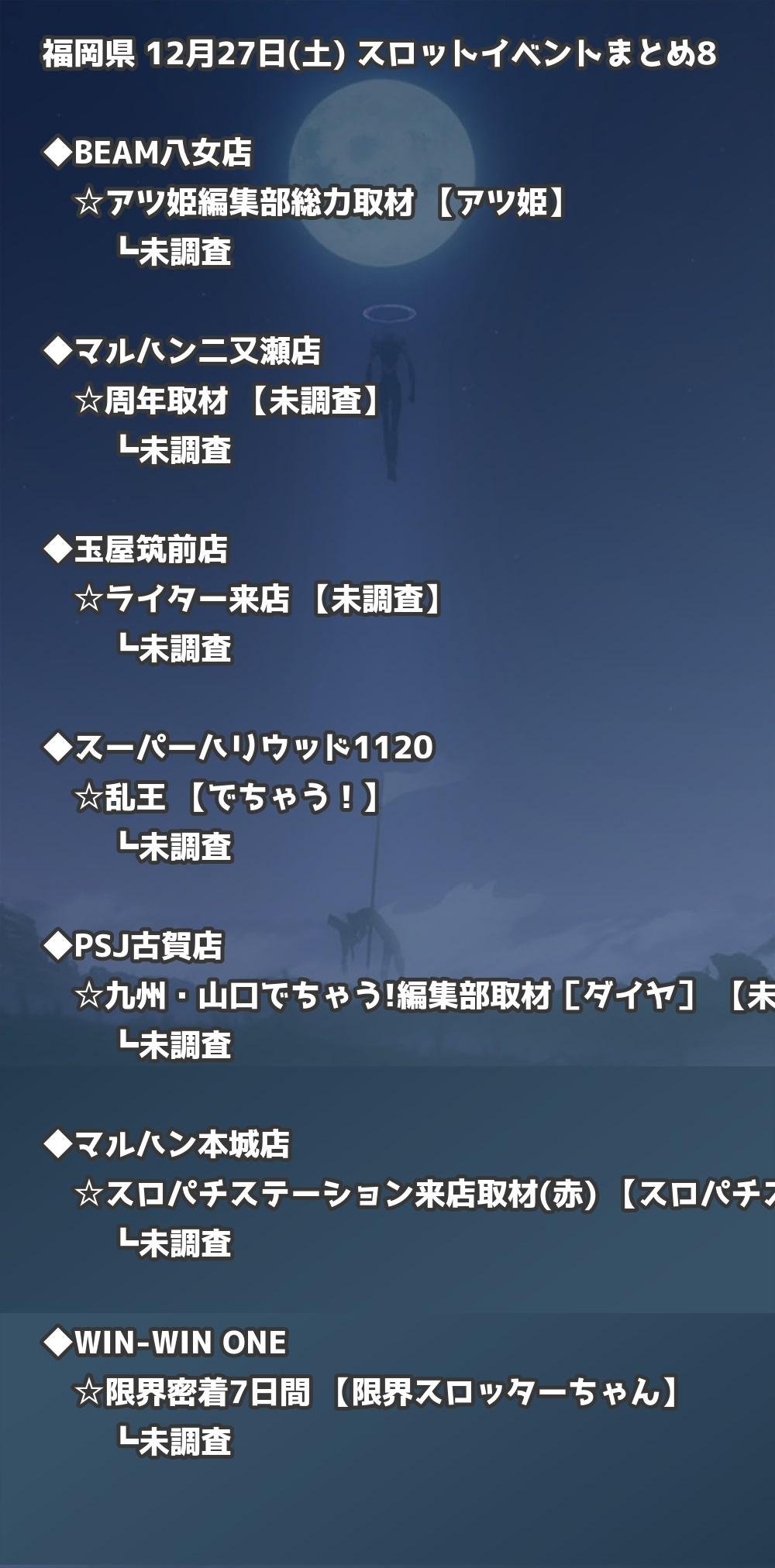 12月27日(土) 福岡県のTOP20の結果を掲載しています。タップで上位機種など詳細が見れます。