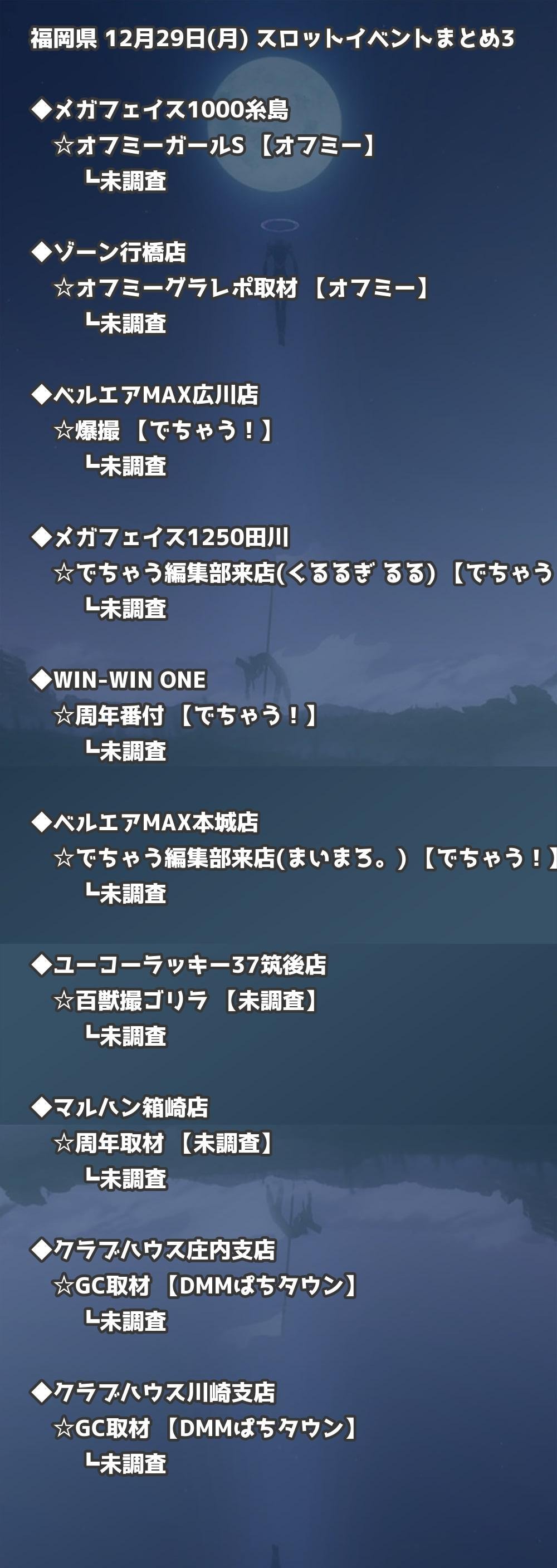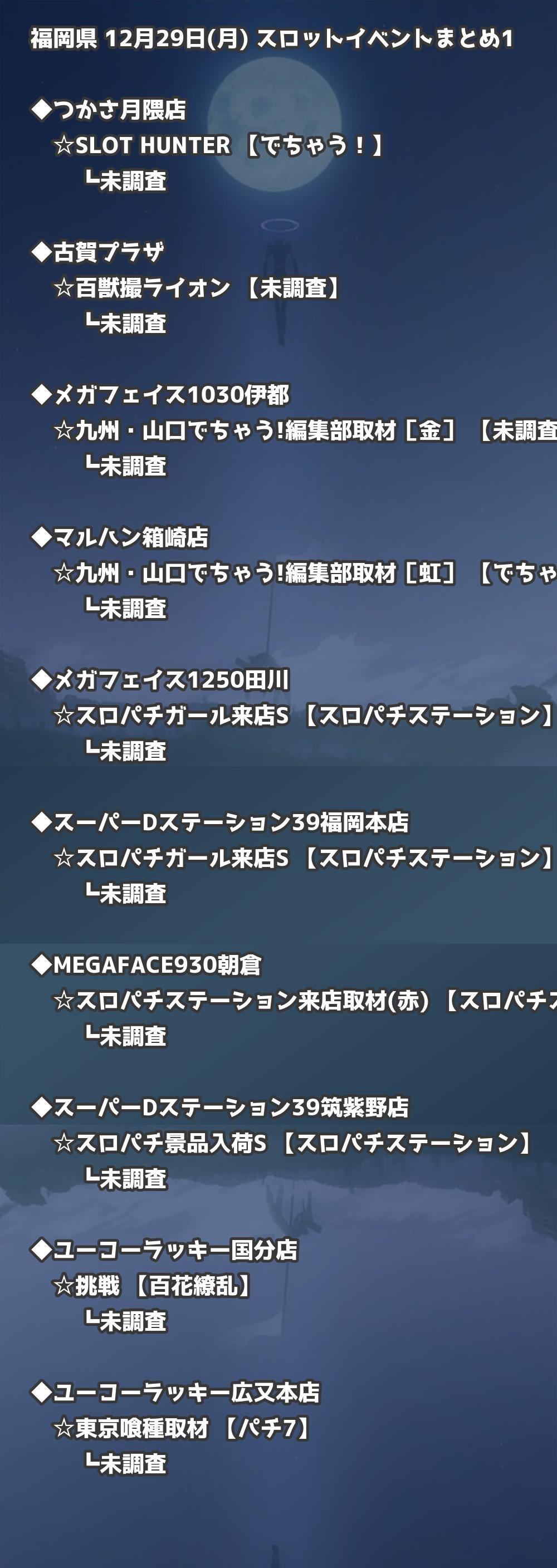 📊 福岡県 12月29日(月) 勝てるパチンコ・スロット取材店舗一覧|おすすめ順