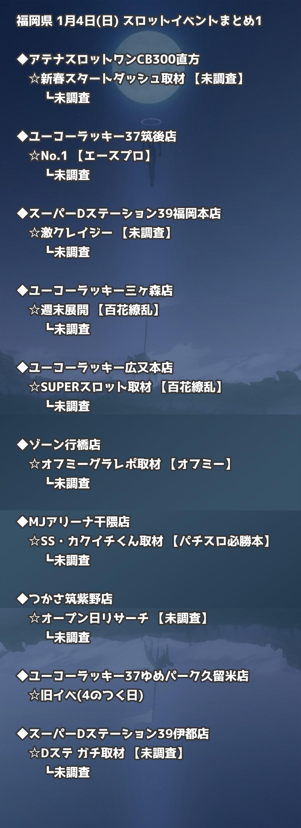 福岡県内のパチンコファンの皆様へ。1月4日(日)の博多・天神エリアを中心としたパチンコホールイベント取材まとめ記事です。
