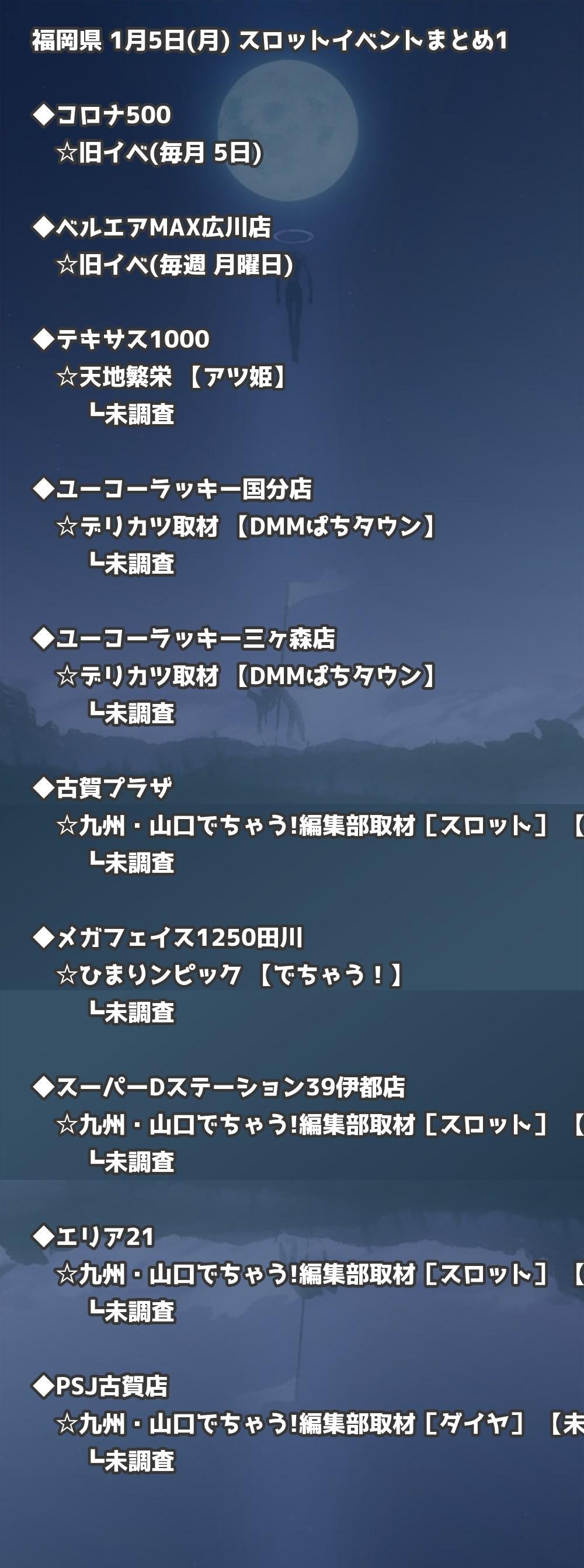 📊 福岡県 1月5日(月) 勝てるパチンコ・スロット取材店舗一覧|おすすめ順