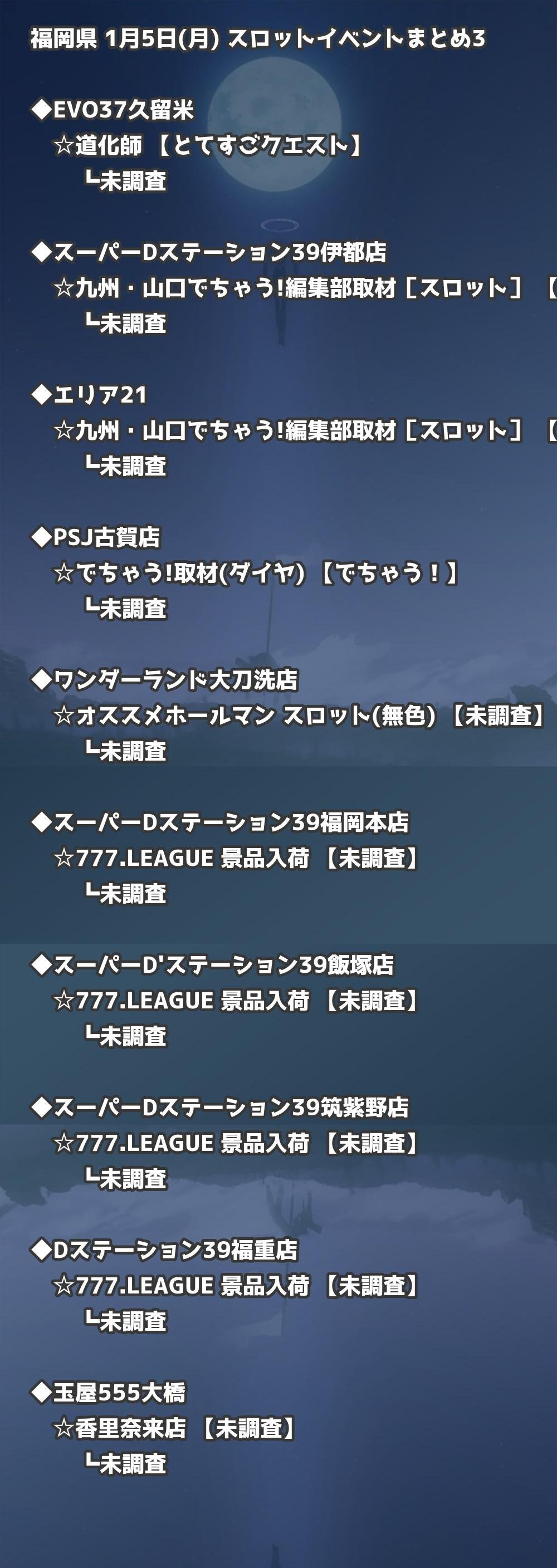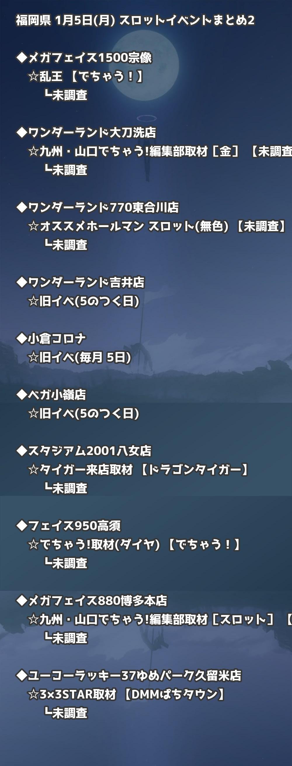 📊 福岡県 1月5日(月) 勝てるパチンコ・スロット取材店舗一覧|おすすめ順