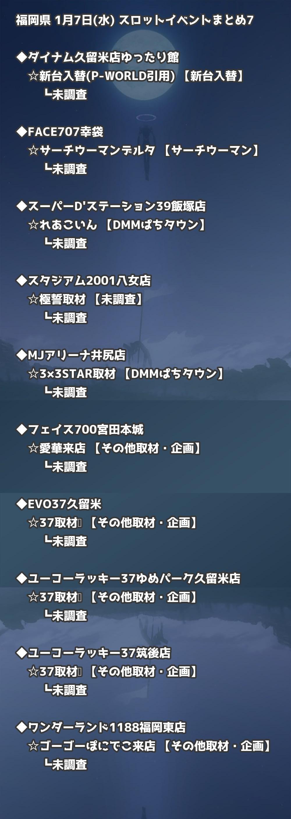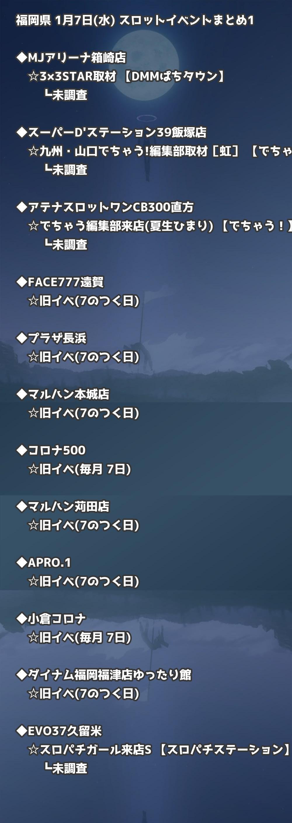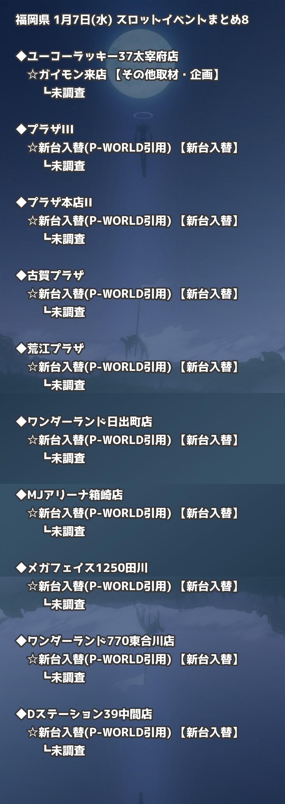 福岡県内のパチンコファンの皆様へ。1月7日(水)の博多・天神エリアを中心としたパチンコホールイベント取材まとめ記事です。