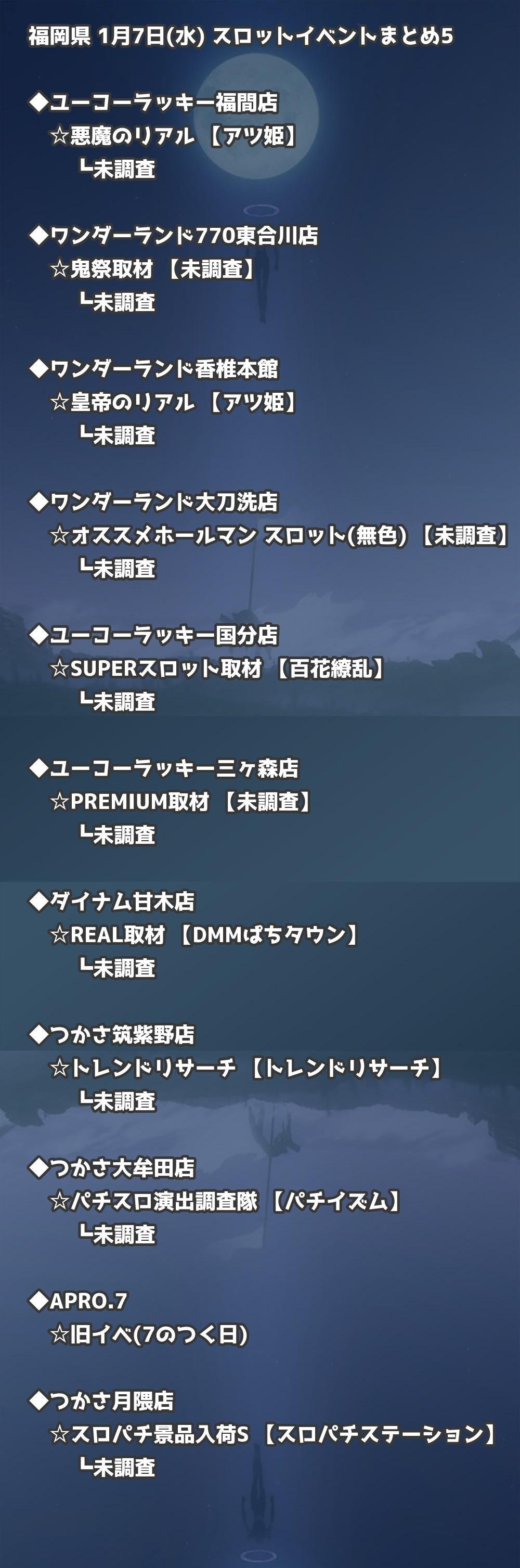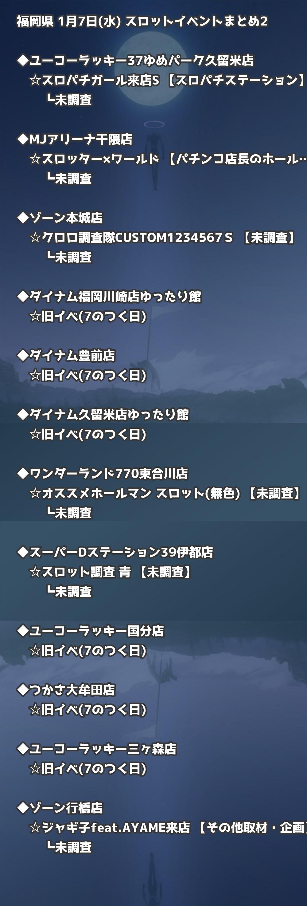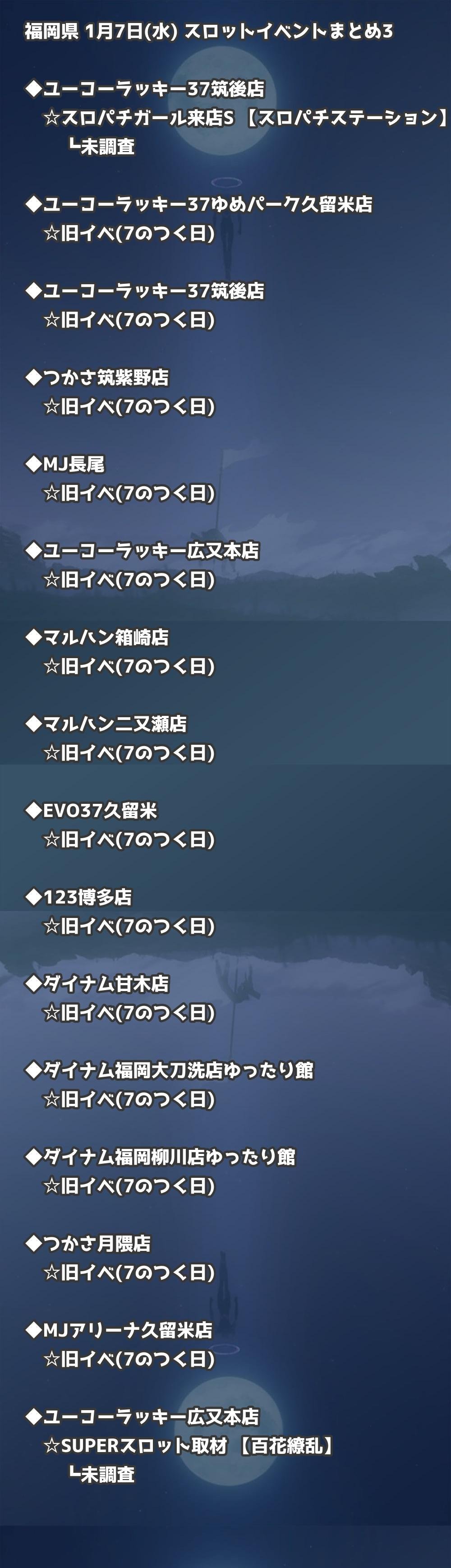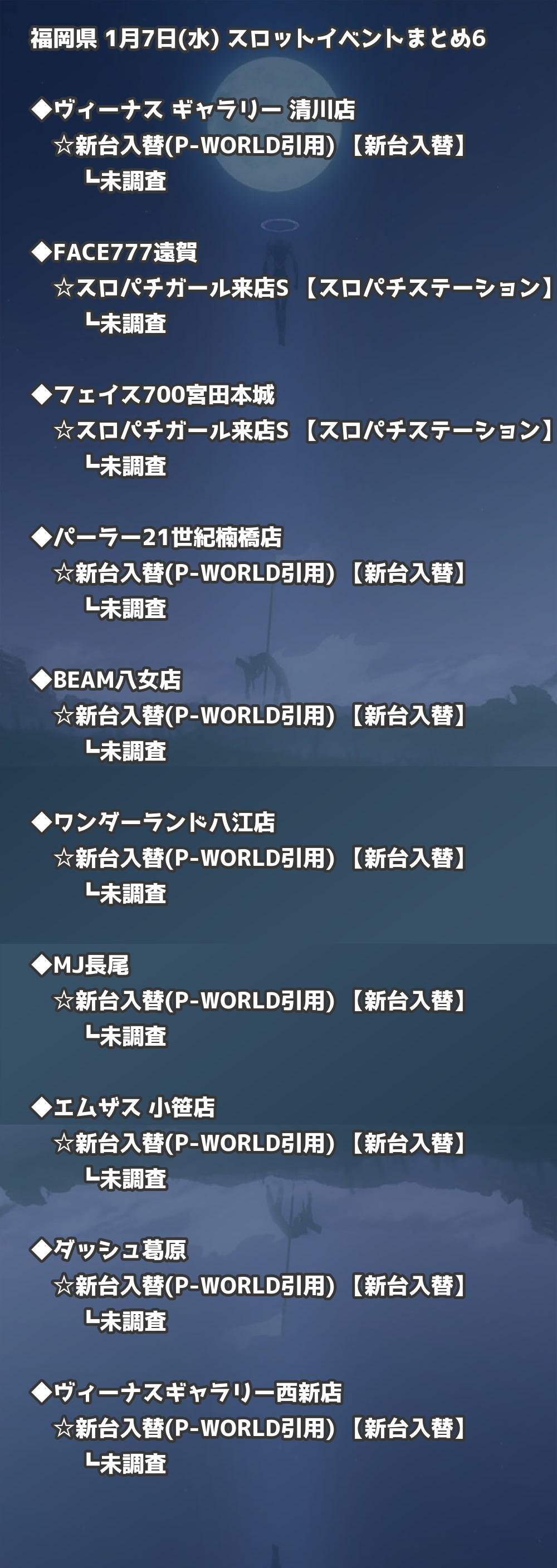 福岡県内のパチンコファンの皆様へ。1月7日(水)の博多・天神エリアを中心としたパチンコホールイベント取材まとめ記事です。