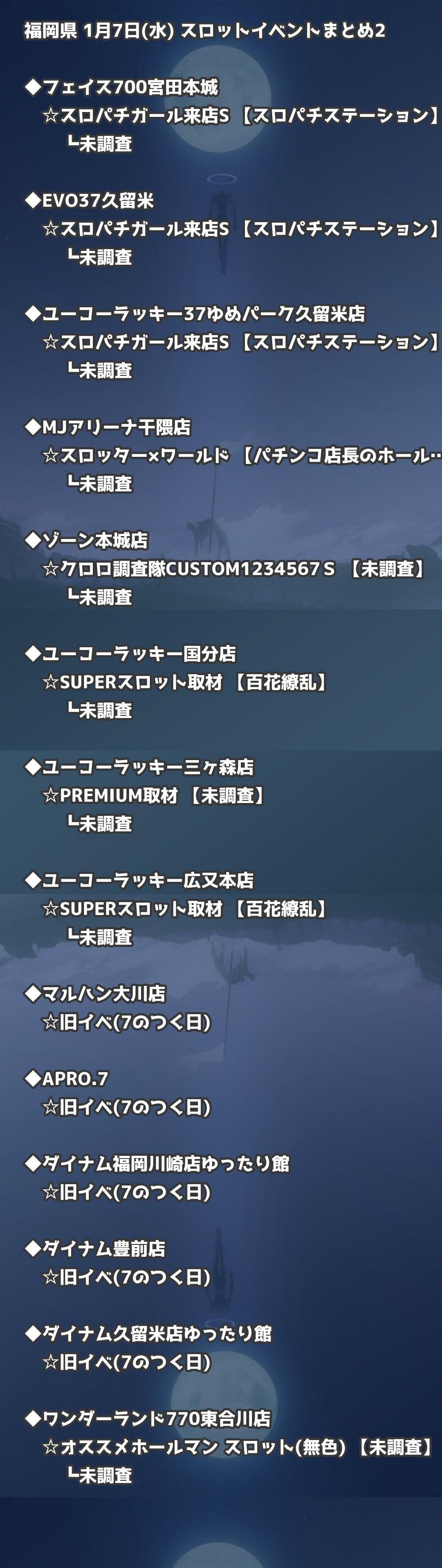 福岡県内のパチンコファンの皆様へ。1月7日(水)の博多・天神エリアを中心としたパチンコホールイベント取材まとめ記事です。