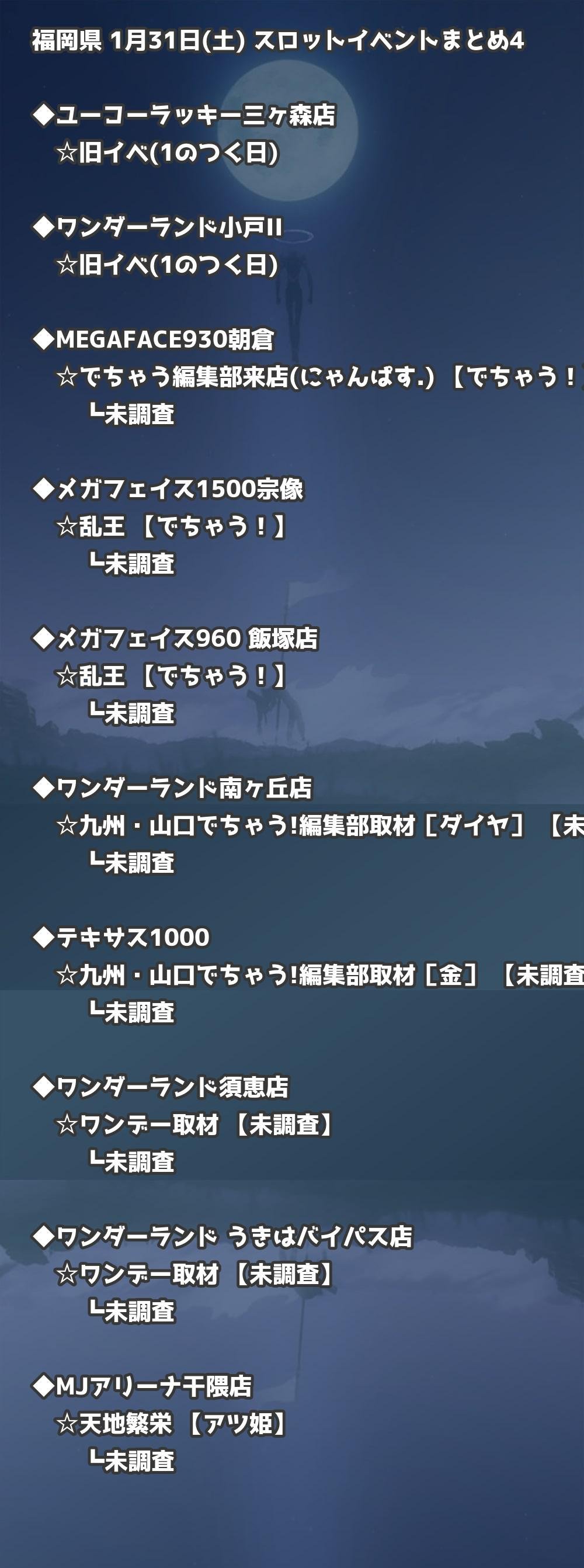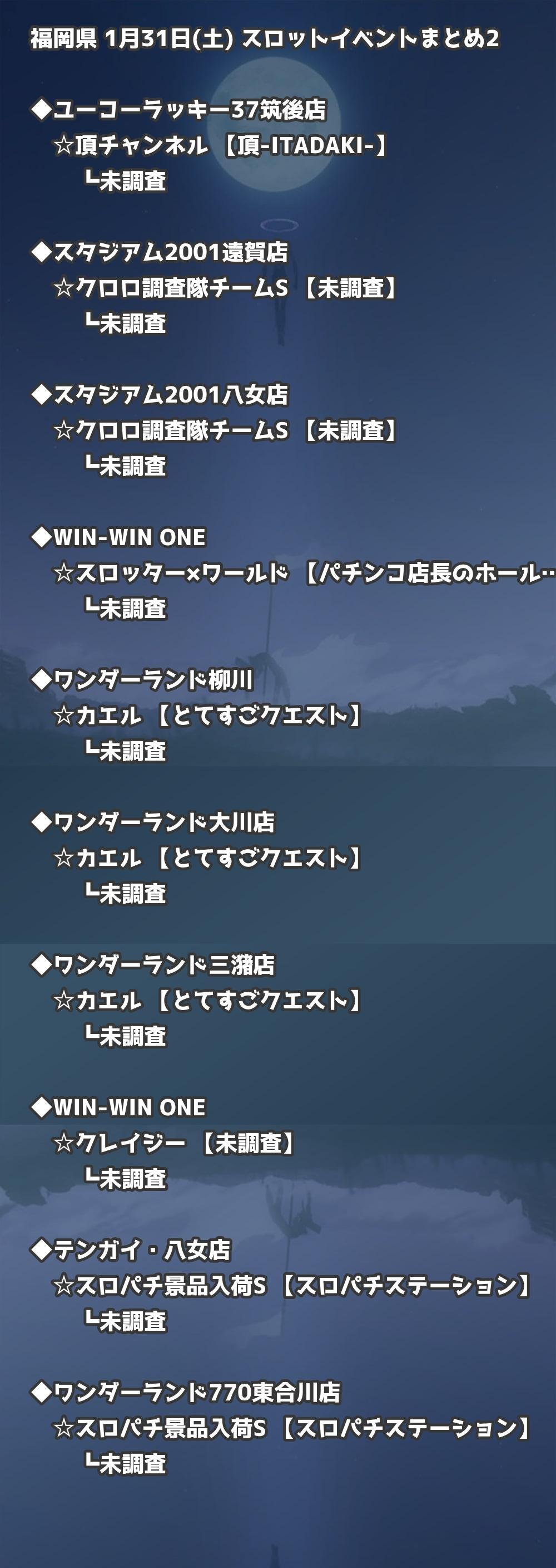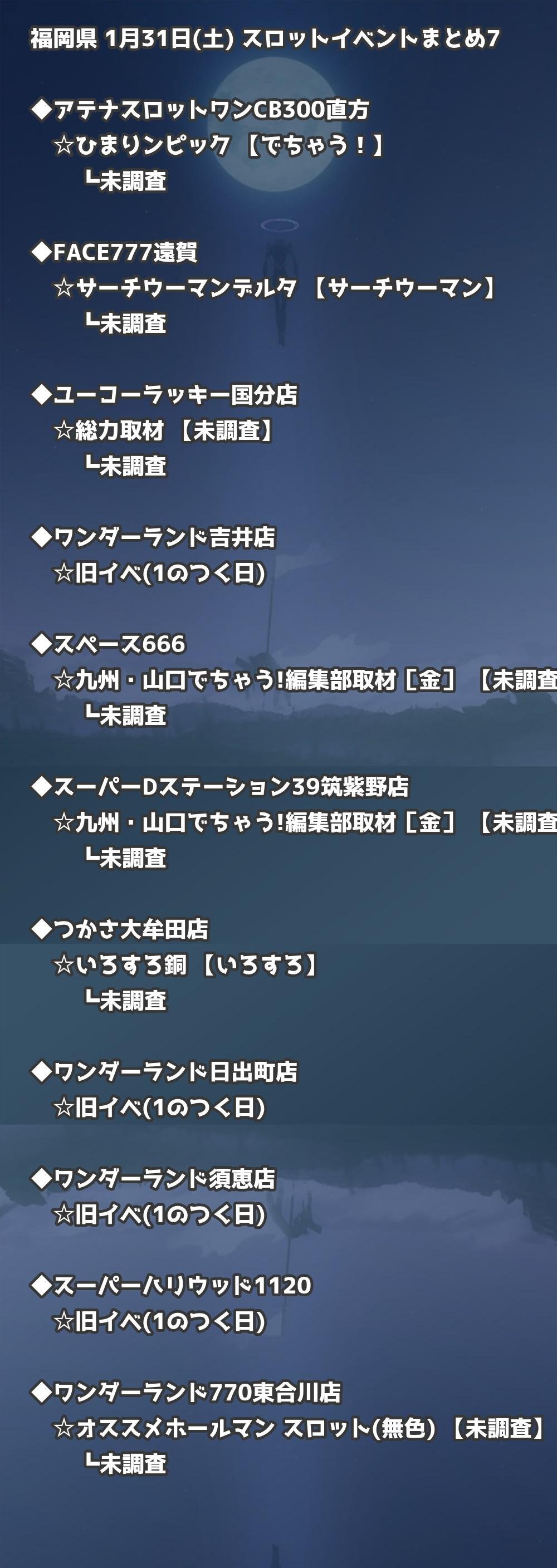📊 福岡県 1月31日(土) 勝てるパチンコ・スロット取材店舗一覧|おすすめ順