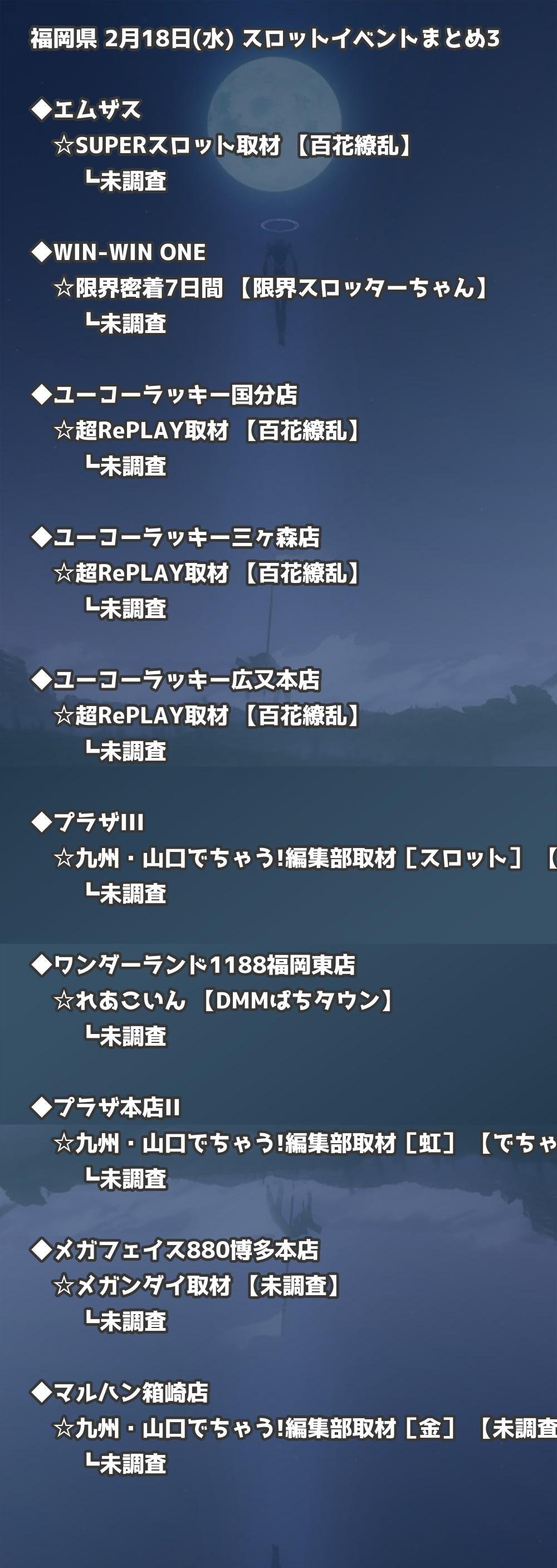 福岡県内のパチンコファンの皆様へ。2月18日(水)の博多・天神エリアを中心としたパチンコホールイベント取材まとめ記事です。