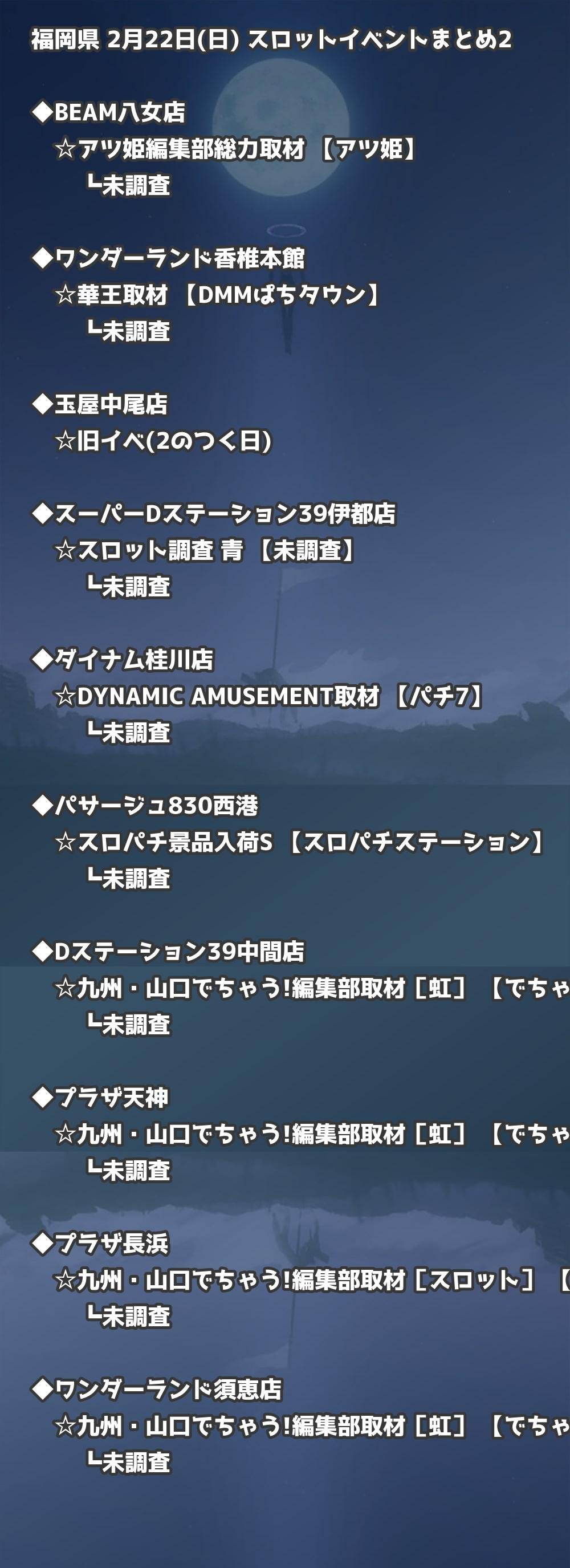 📊 福岡県 2月22日(日) 勝てるパチンコ・スロット取材店舗一覧|おすすめ順