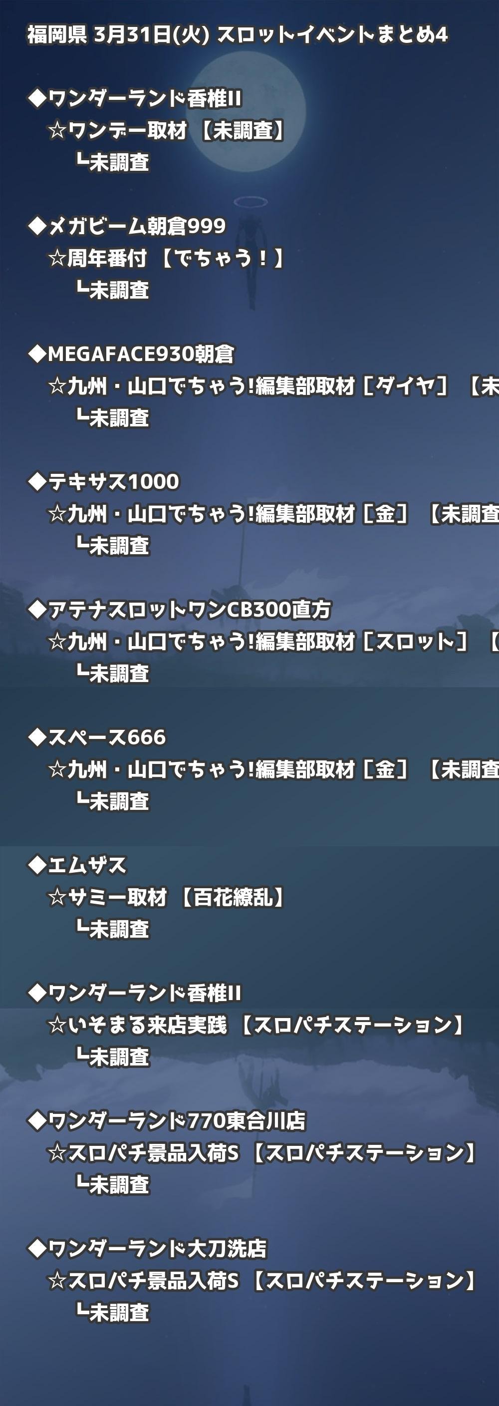 📊 福岡県 3月31日(火) 勝てるパチンコ・スロット取材店舗一覧|おすすめ順