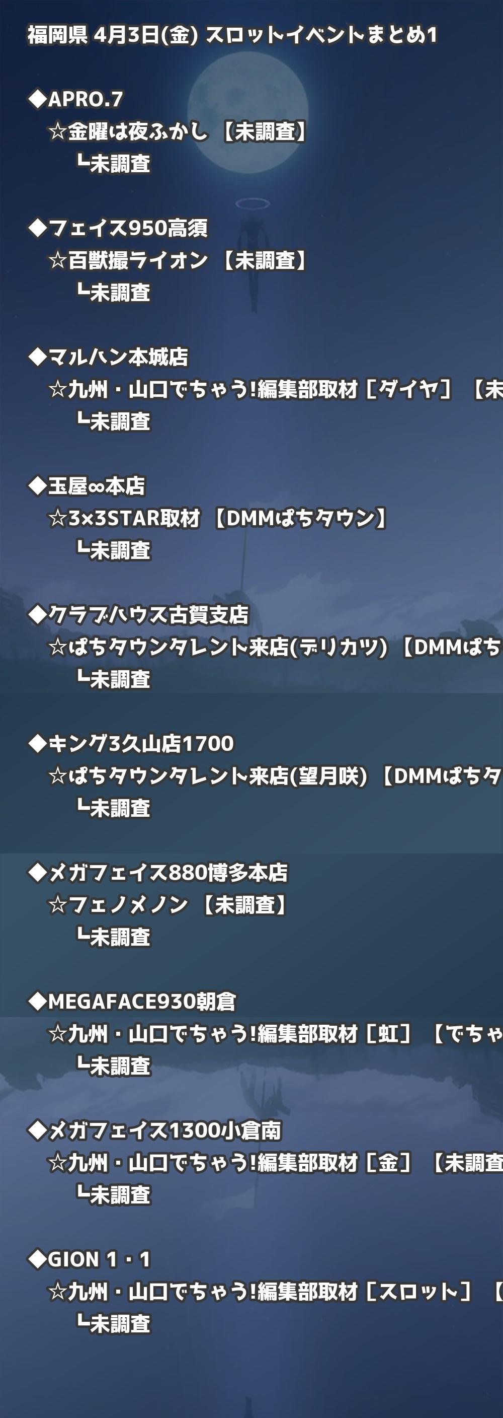 福岡県内のパチンコファンの皆様へ。4月3日(金)の博多・天神エリアを中心としたパチンコホールイベント取材まとめ記事です。