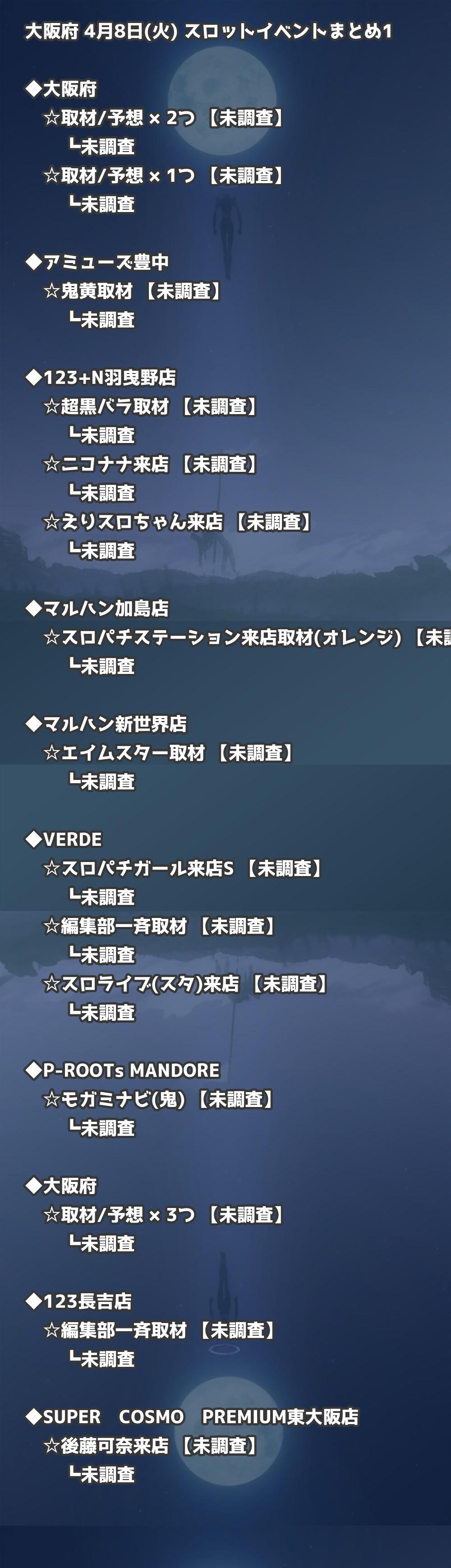 大阪府 4月8日(火) パチンコ・スロット イベント 取材まとめ・オススメ店舗順一覧