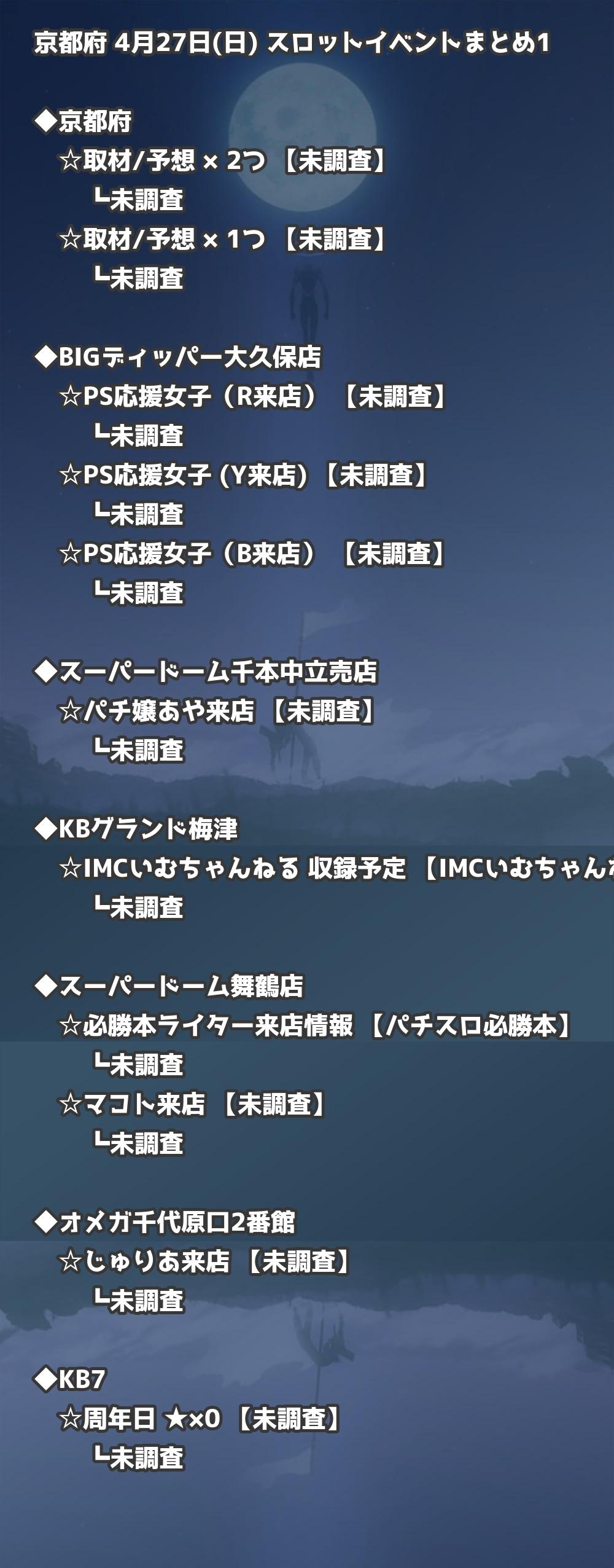 京都府 4月27日(日) パチンコ・スロット イベント 取材まとめ・オススメ店舗順一覧