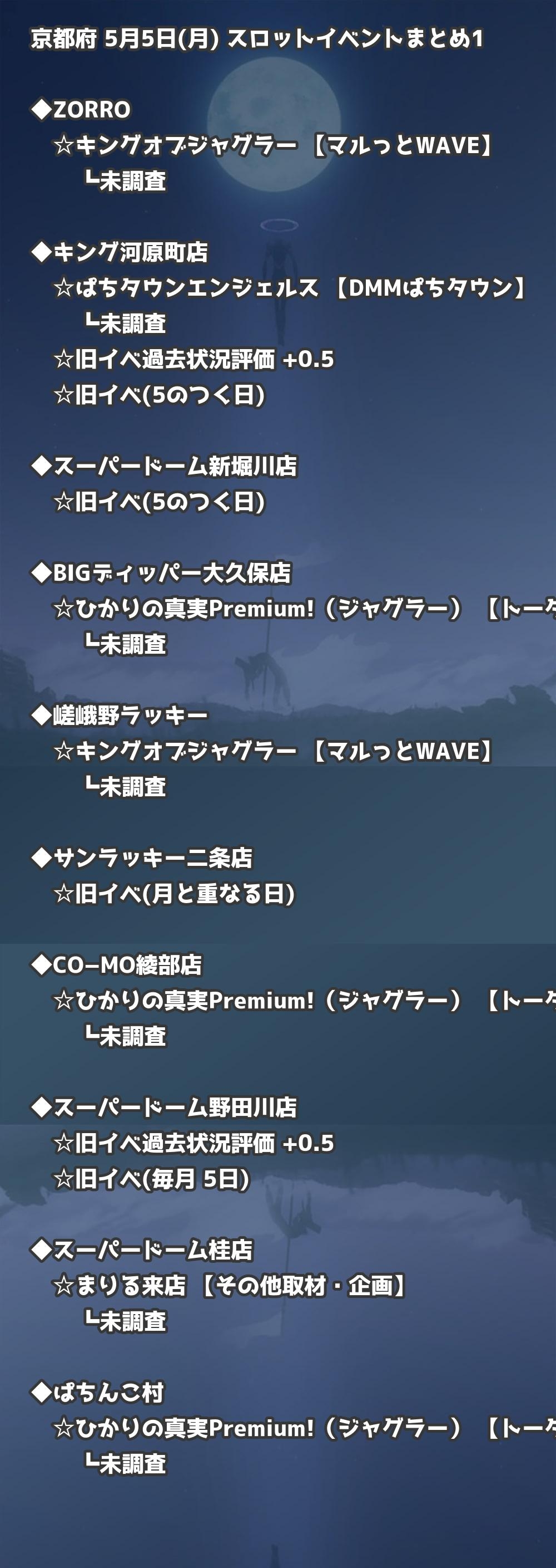 京都府 5月5日(月) パチンコ・スロット イベント 取材まとめ・オススメ店舗順一覧