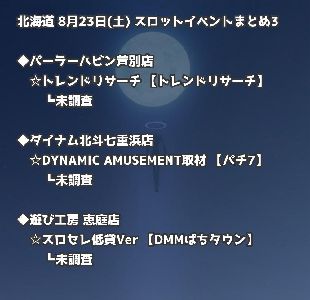 📊 北海道 8月23日(土) 勝てるパチンコ・スロット取材店舗一覧|おすすめ順