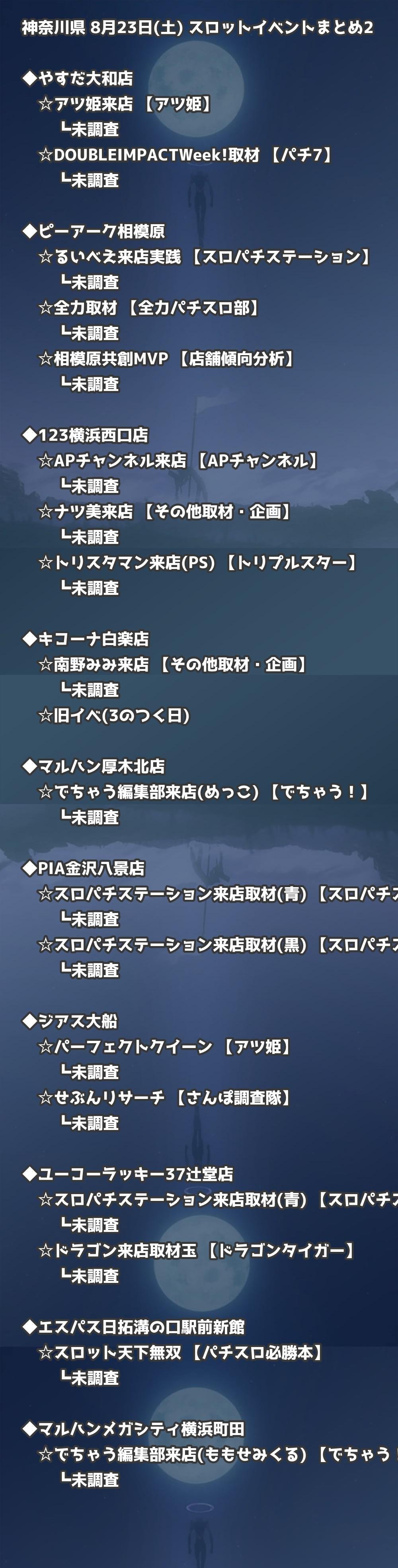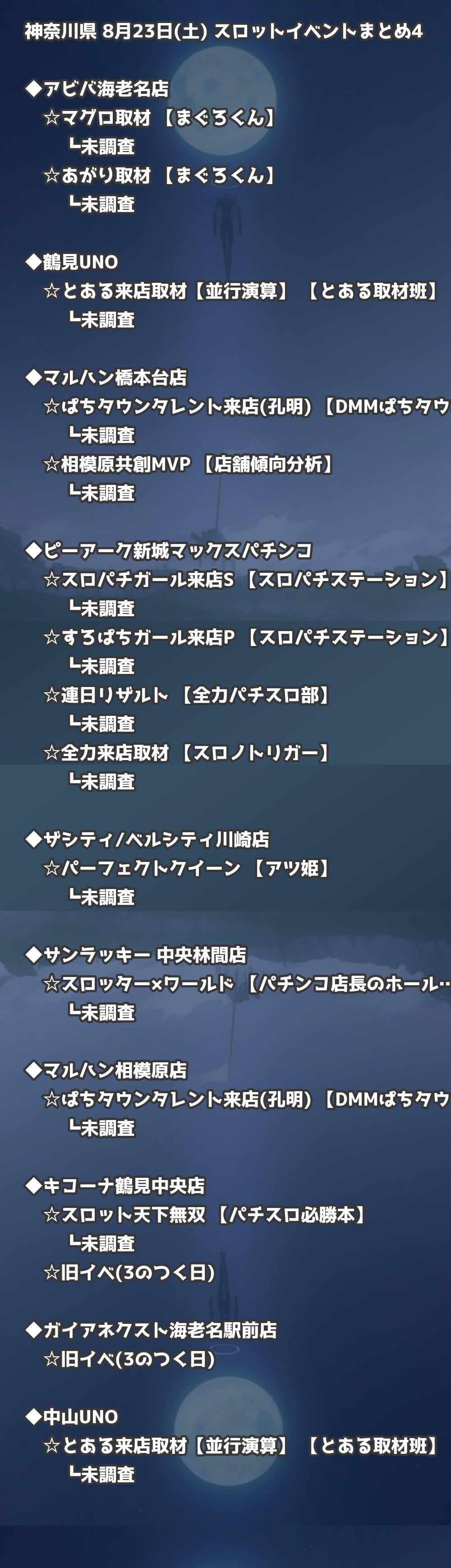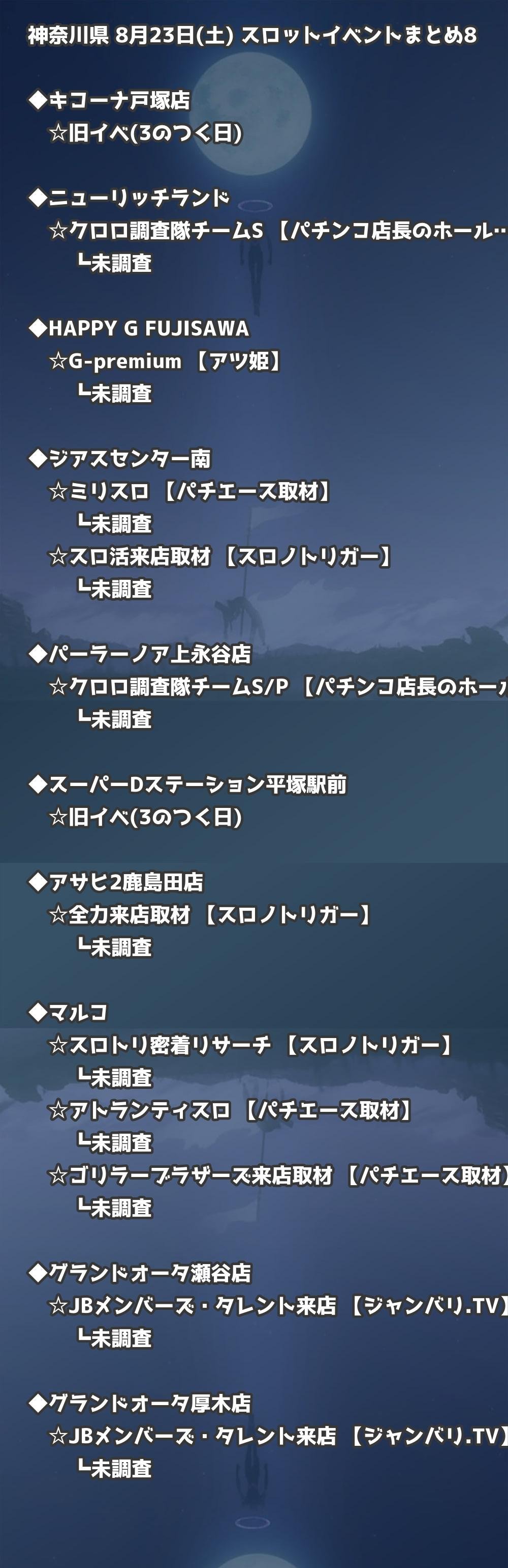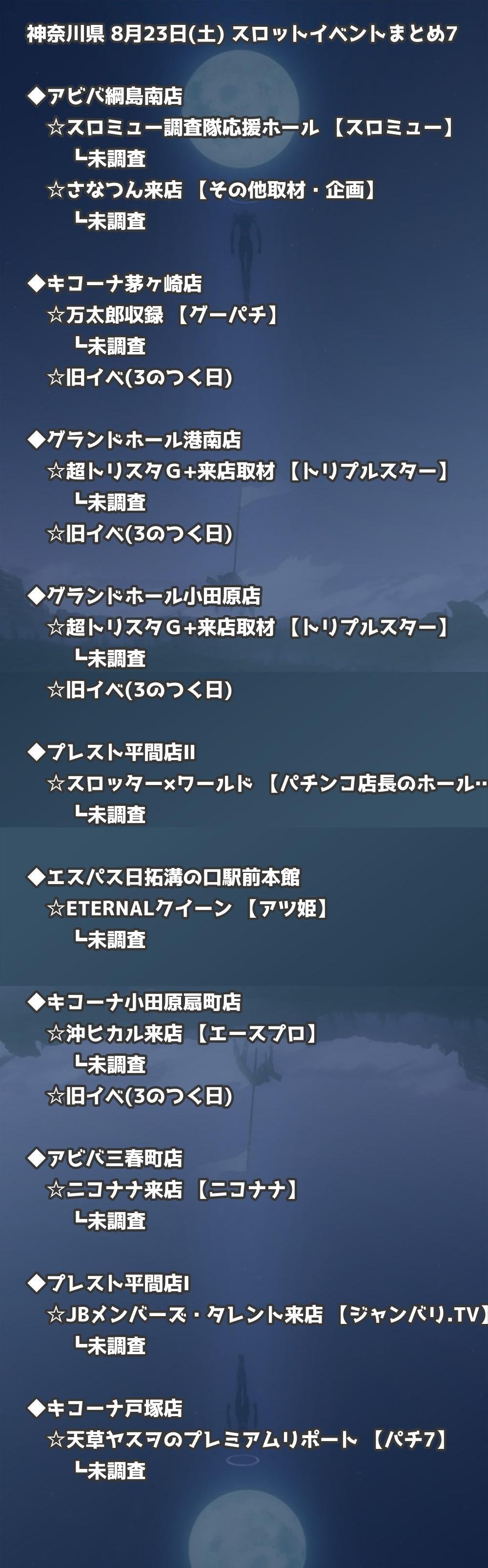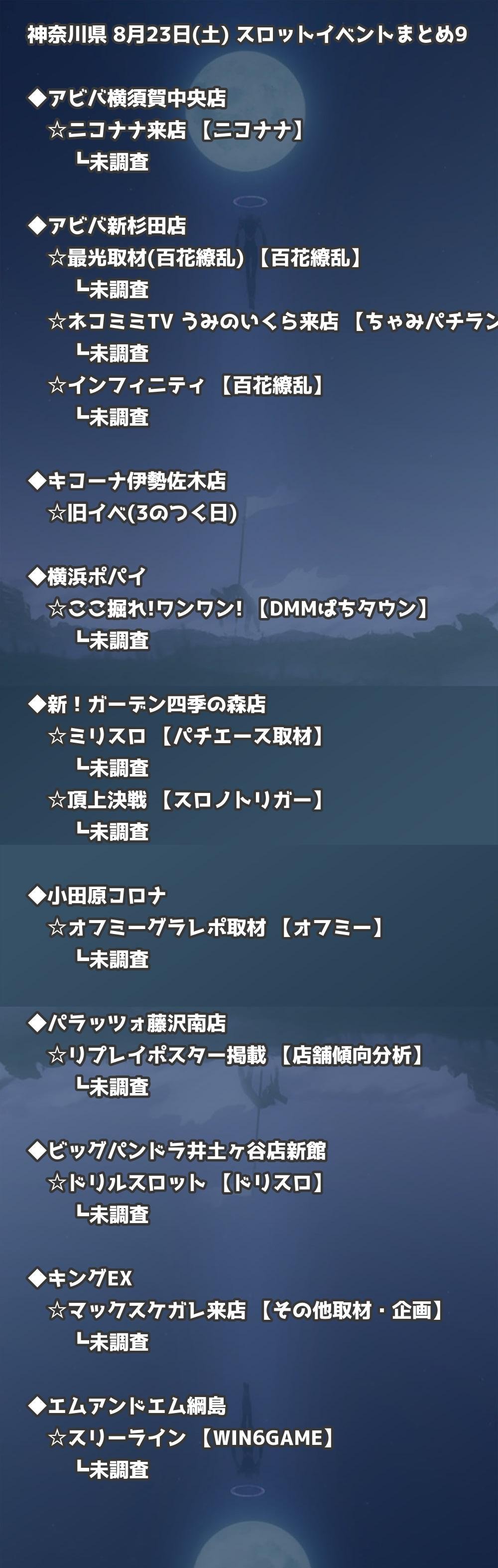 📊 神奈川県 8月23日(土) 勝てるパチンコ・スロット取材店舗一覧|おすすめ順
