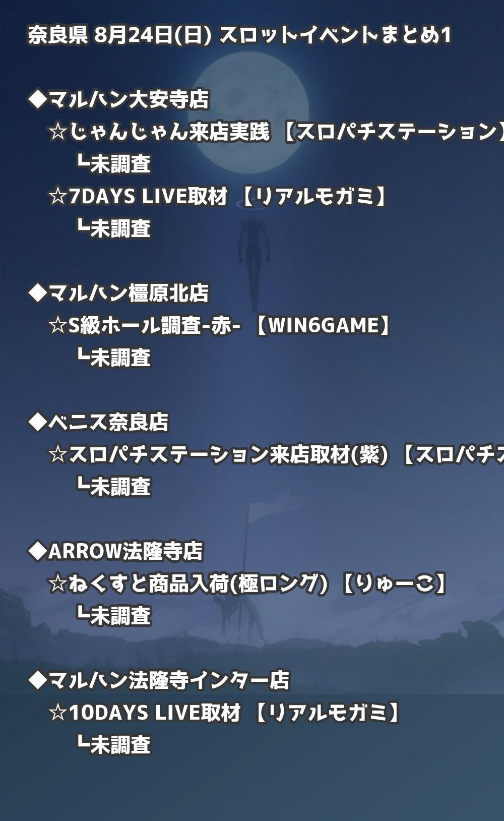 【奈良県】8月24日(日) パチンコホールイベント取材まとめ記事です。