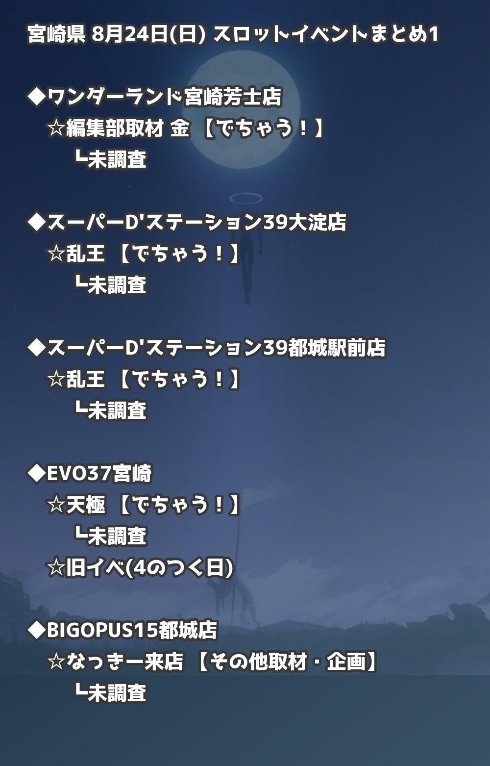 【宮崎県】8月24日(日) パチンコホールイベント取材まとめ記事です。