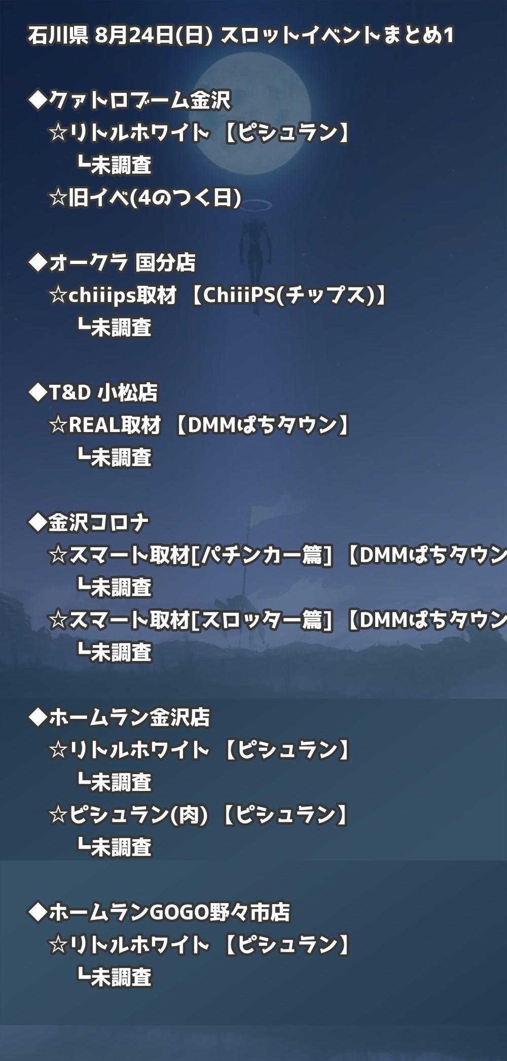 【石川県】8月24日(日) パチンコホールイベント取材まとめ記事です。