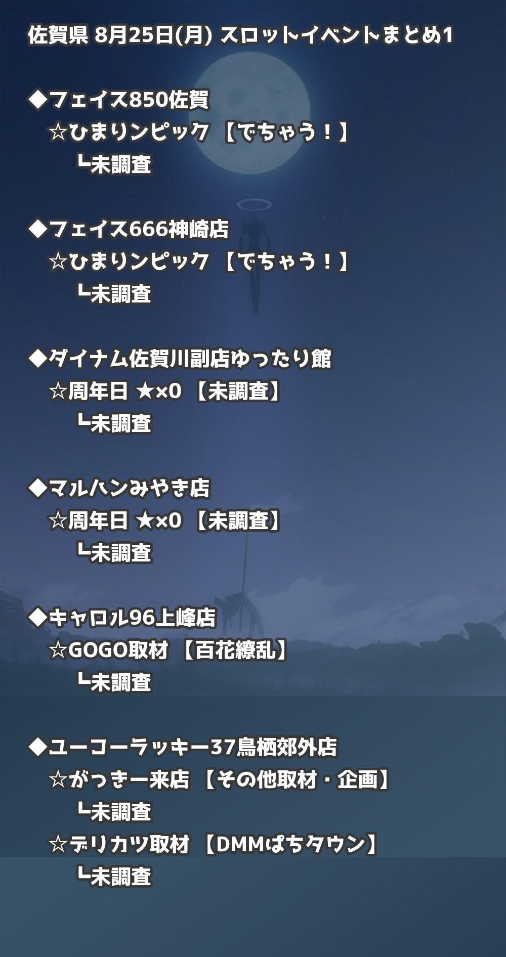 📊 佐賀県 8月25日(月) 勝てるパチンコ・スロット取材店舗一覧|おすすめ順