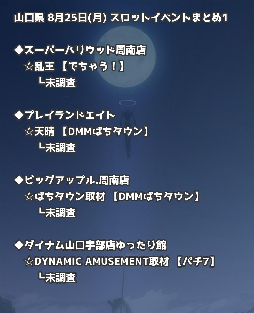 【山口県】8月25日(月) パチンコホールイベント取材まとめ記事です。