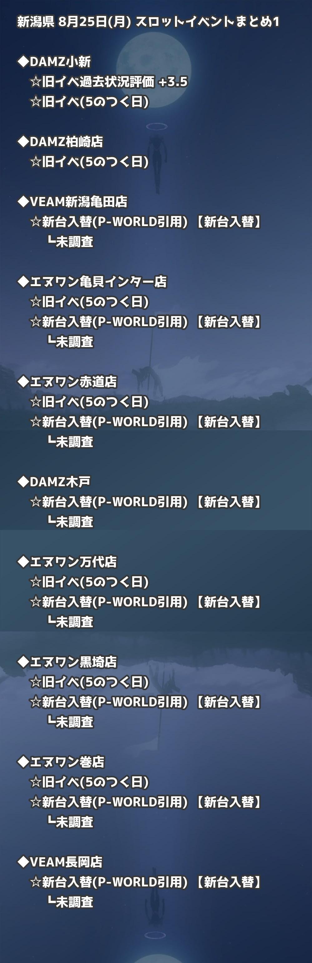 【新潟県】8月25日(月) パチンコホールイベント取材まとめ記事です。