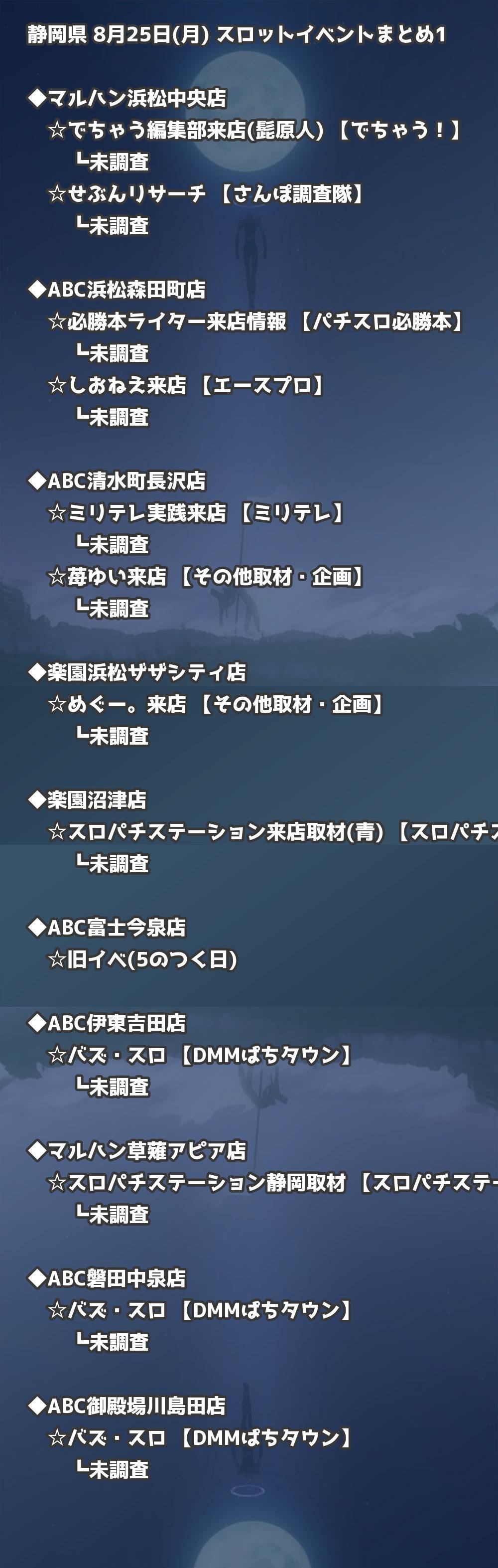 📊 静岡県 8月25日(月) 勝てるパチンコ・スロット取材店舗一覧|おすすめ順