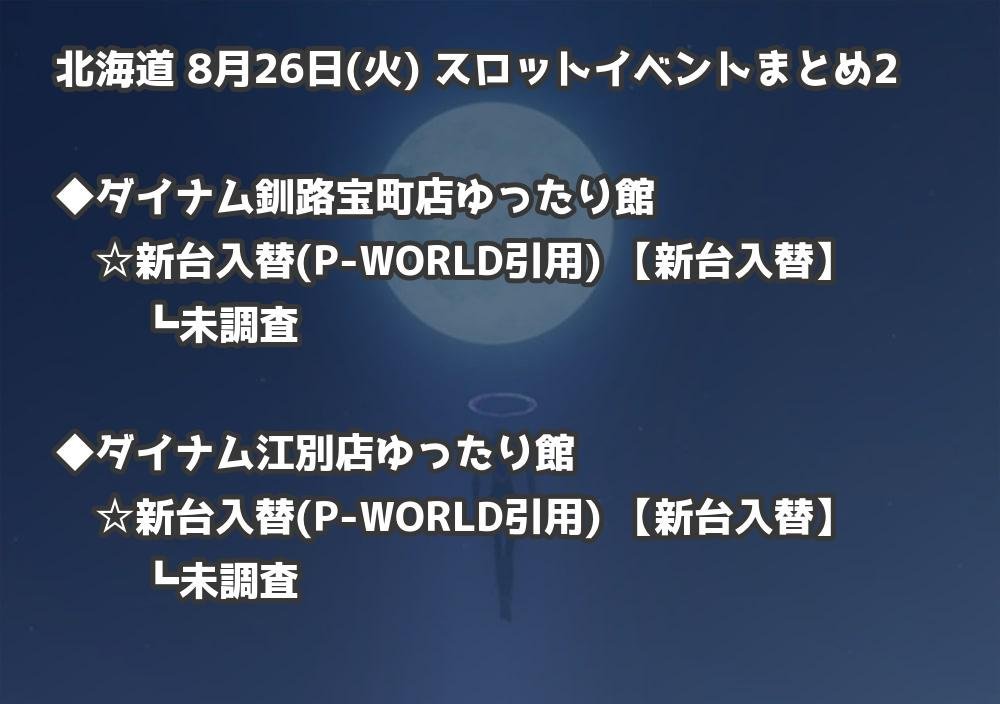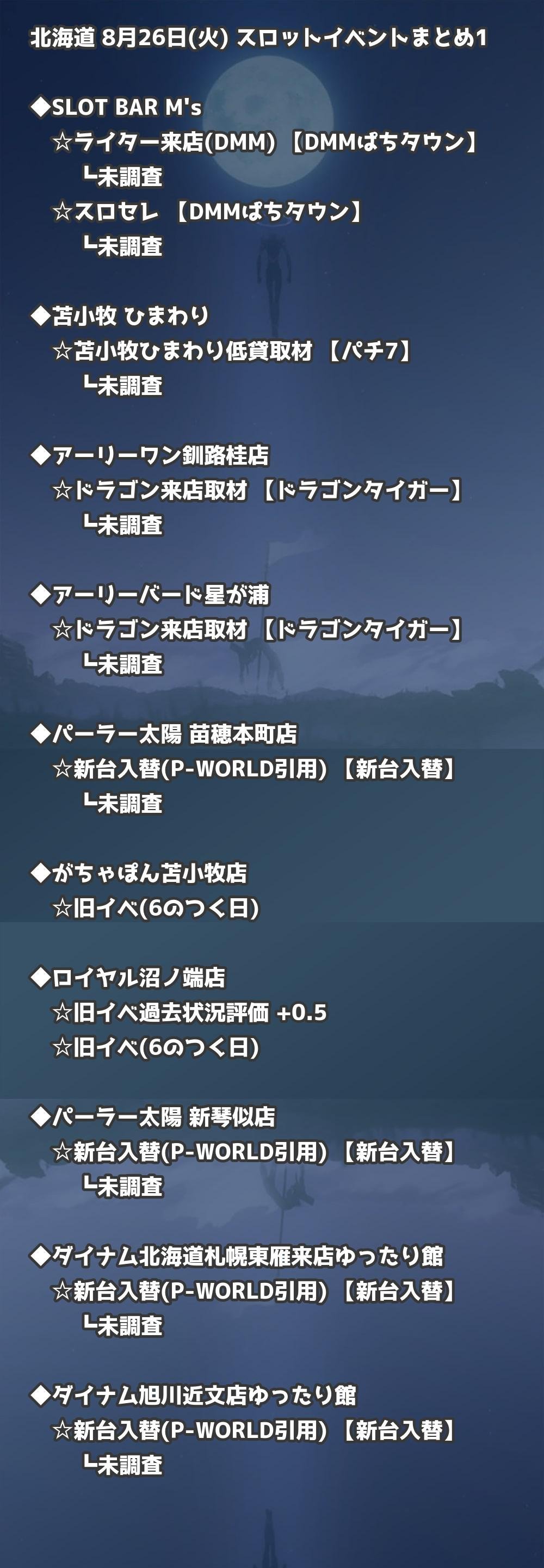 【北海道】8月26日(火) パチンコホールイベント取材まとめ記事です。