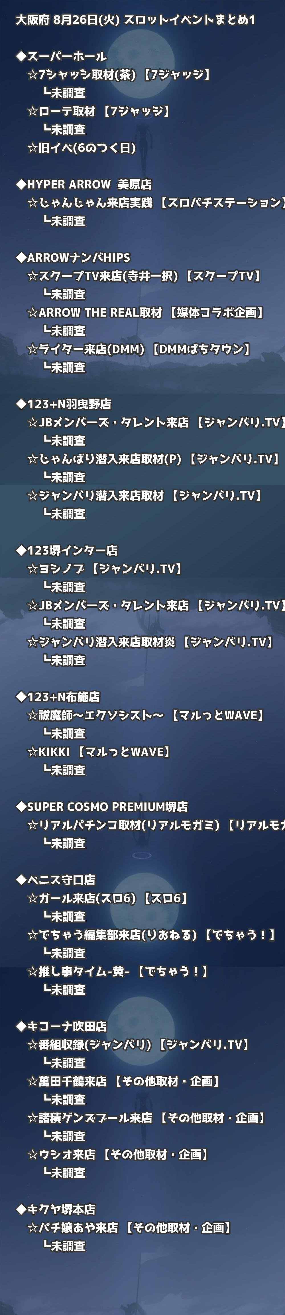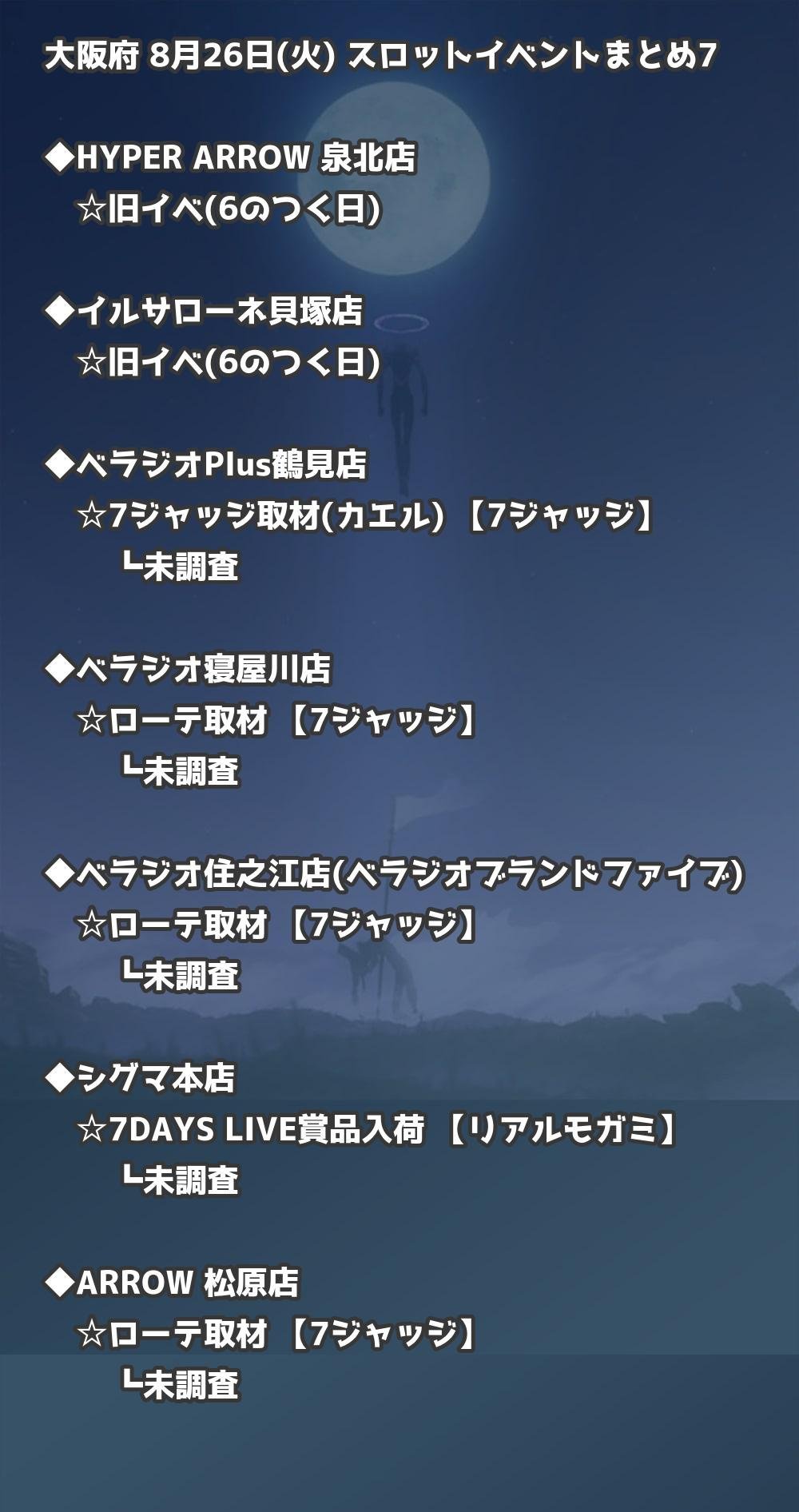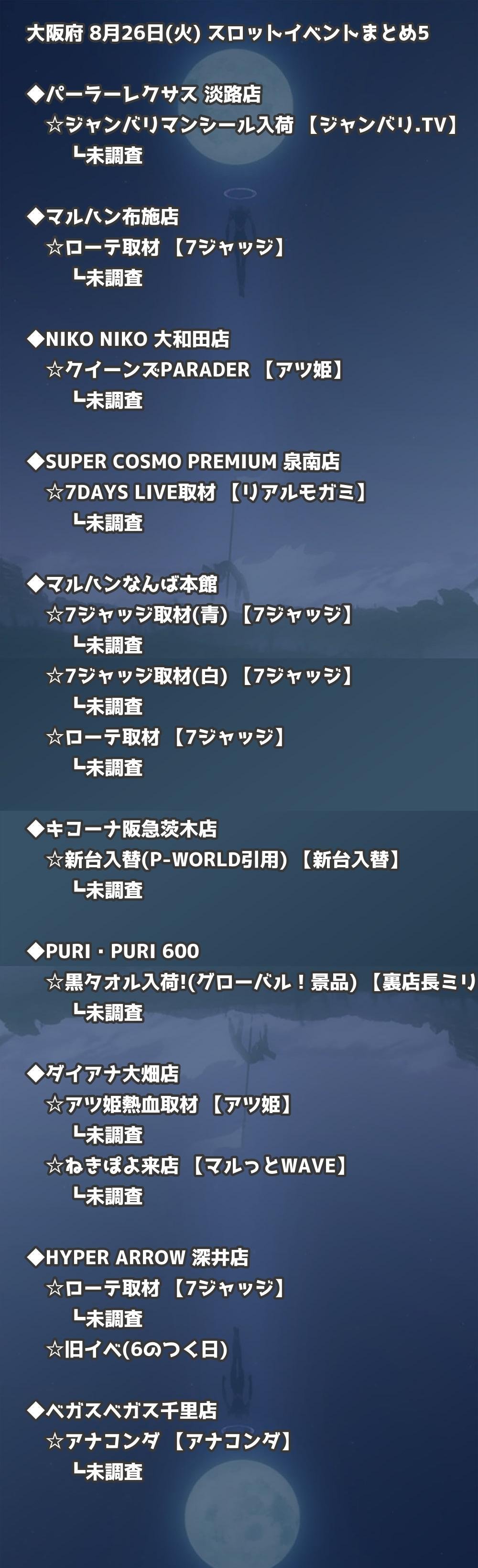 📊 大阪府 8月26日(火) 勝てるパチンコ・スロット取材店舗一覧|おすすめ順