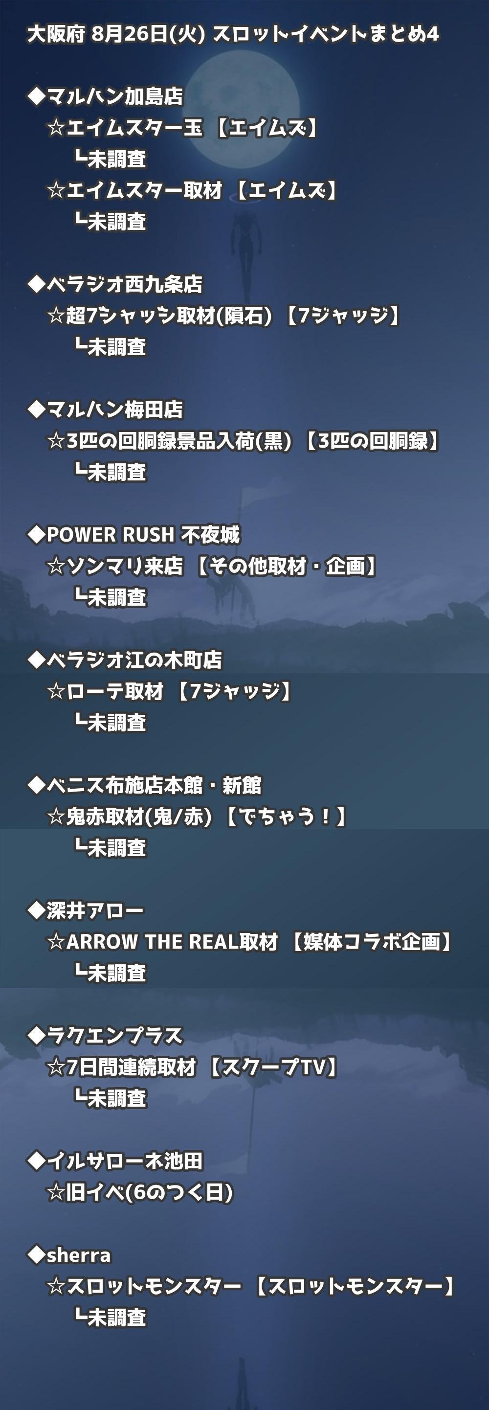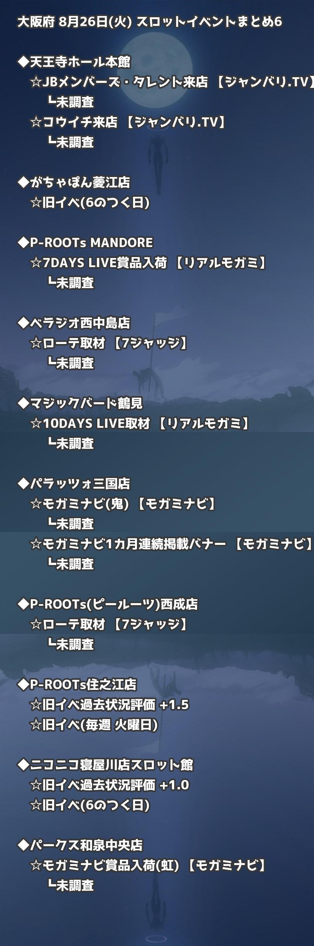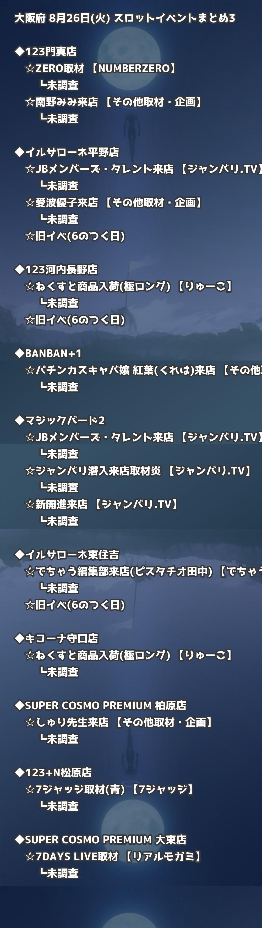 📊 大阪府 8月26日(火) 勝てるパチンコ・スロット取材店舗一覧|おすすめ順